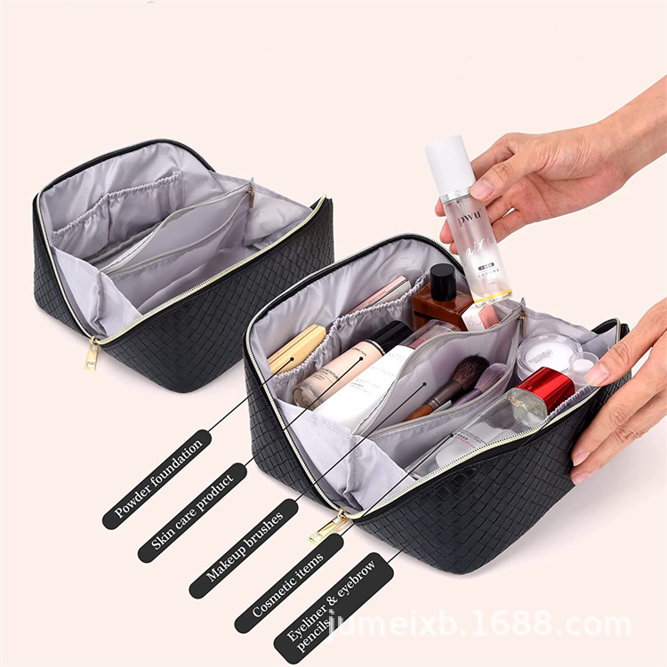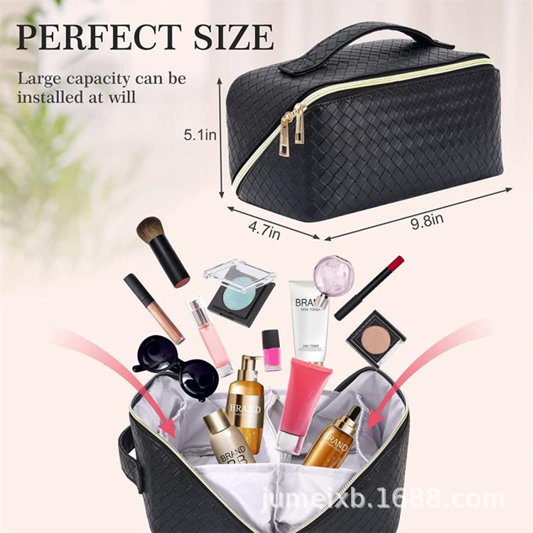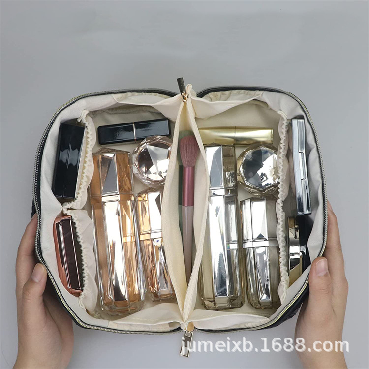 새로운 인 스타일 화장품 가방 대용량 PU 가죽 격자 무늬 화장품 보관 가방 여행 세탁 가방 제조 업체 도매스토어 가기