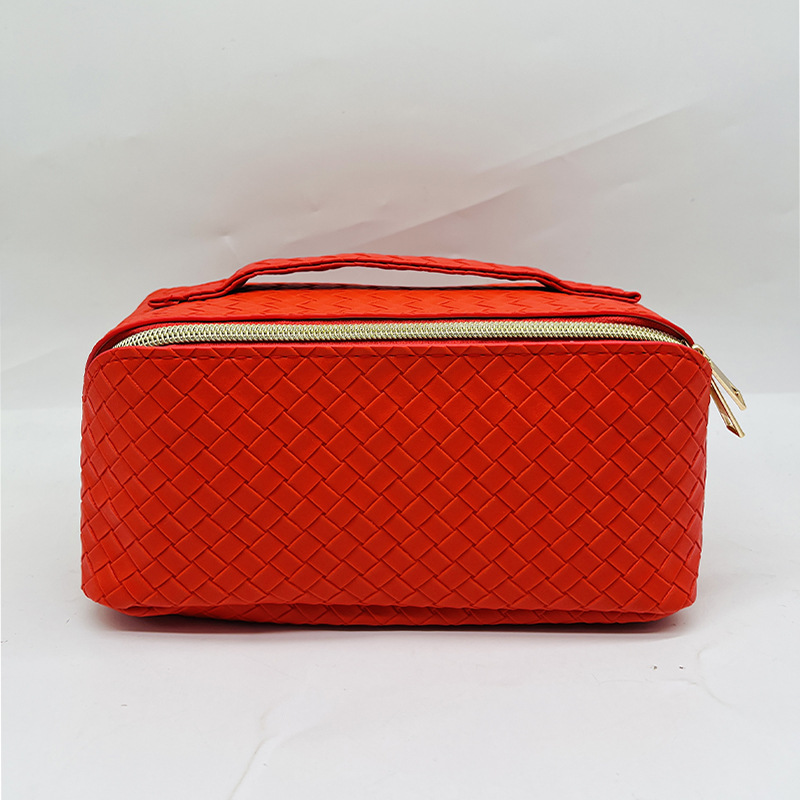 새로운 인 스타일 화장품 가방 대용량 PU 가죽 격자 무늬 화장품 보관 가방 여행 세탁 가방 제조 업체 도매