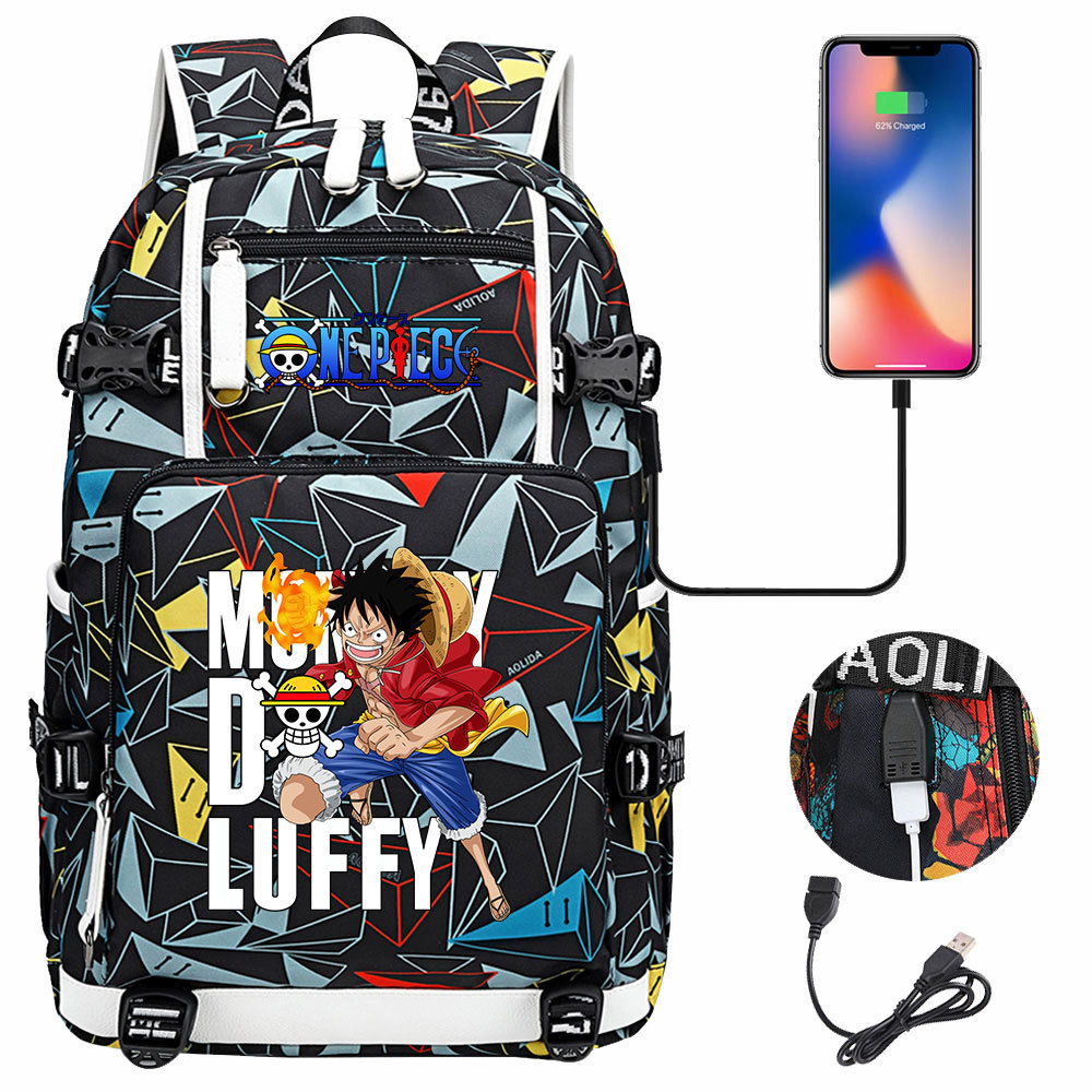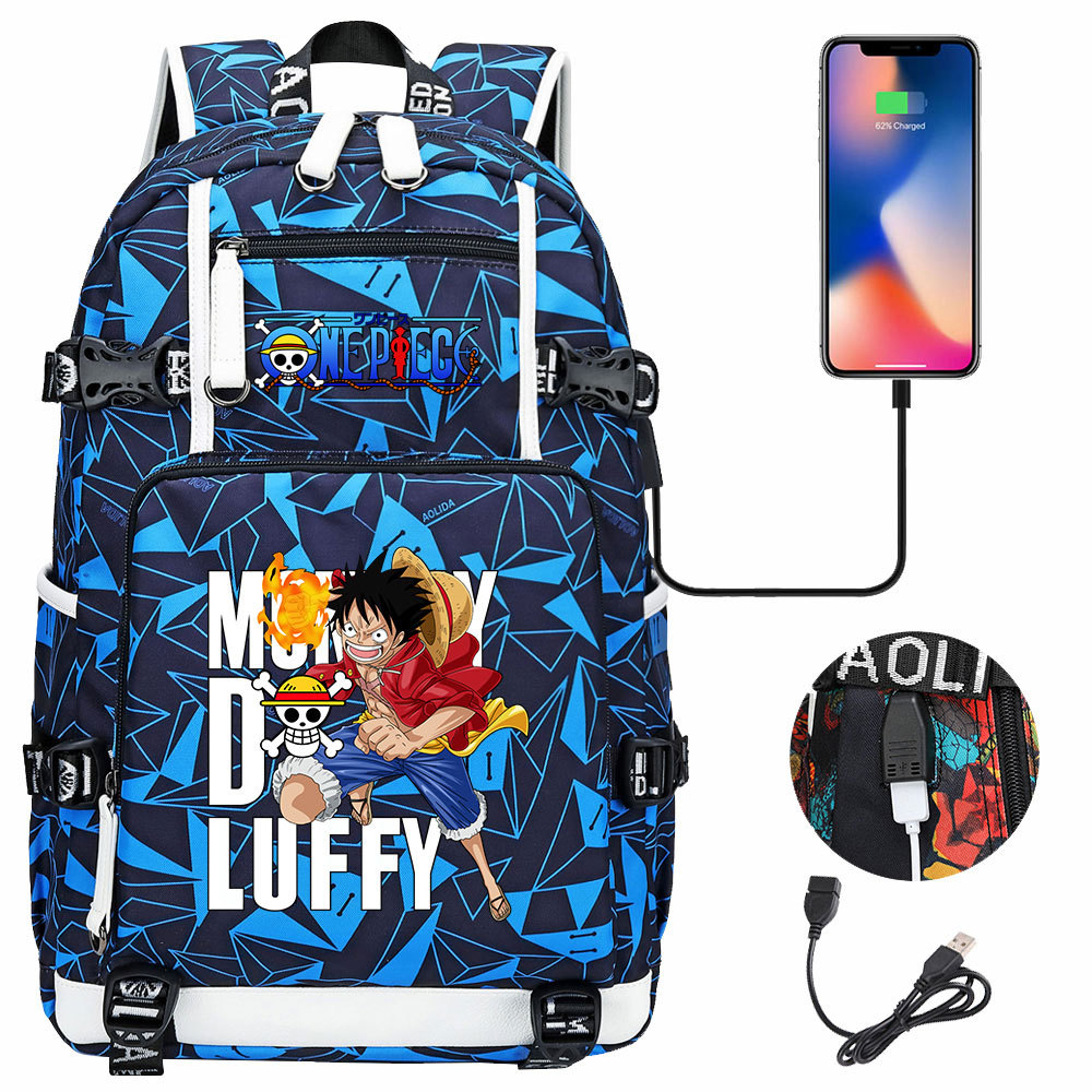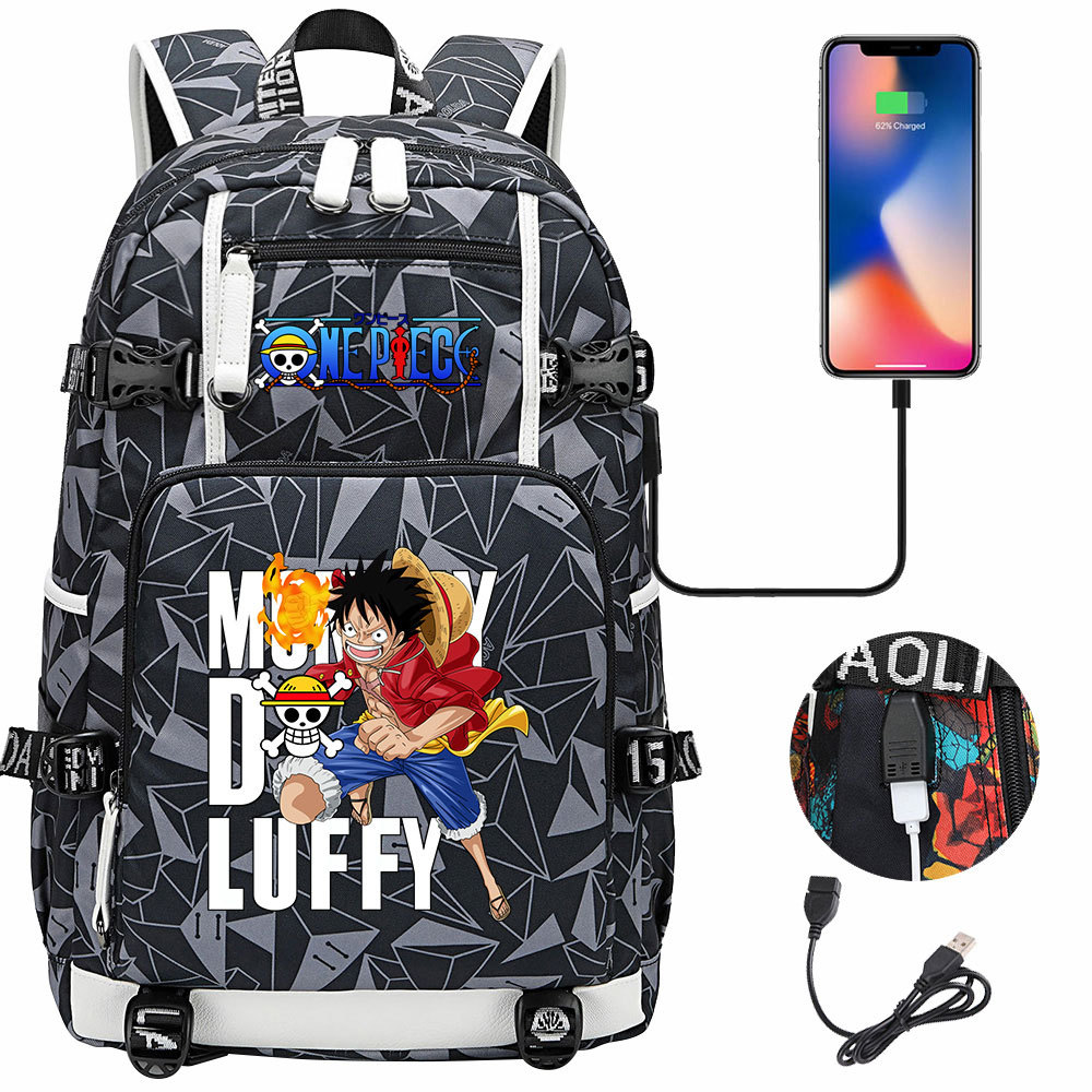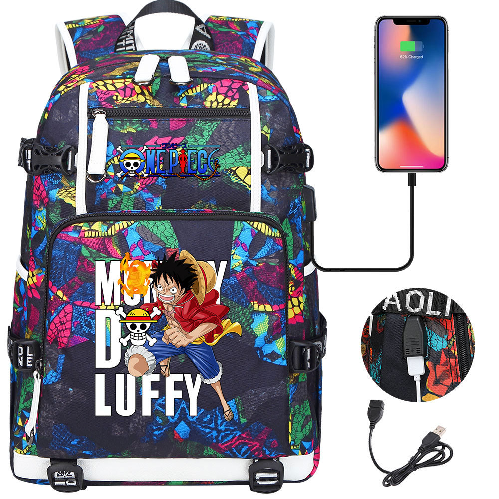 루피 원피스 컬렉션 인쇄 USB 십대 학생 스쿨 백 유니섹스 캐주얼 대용량 여행 배낭