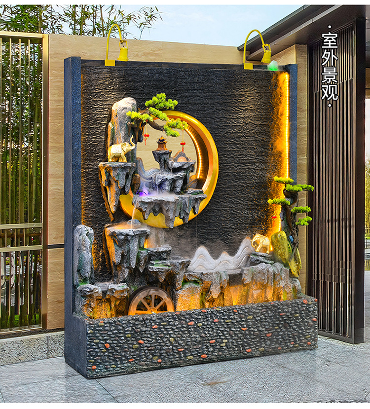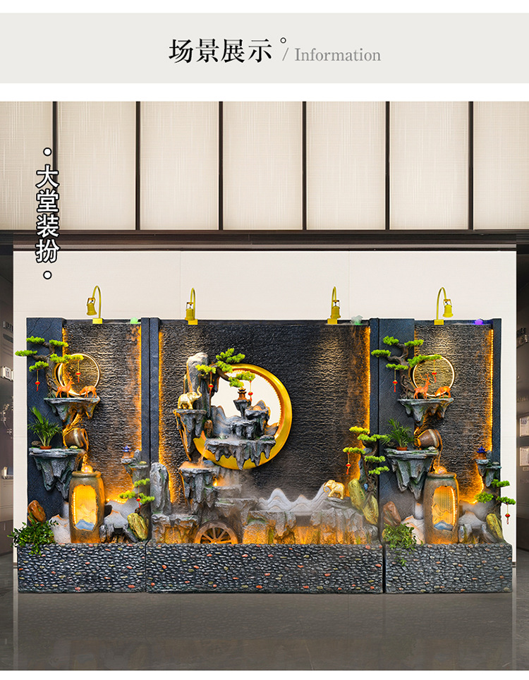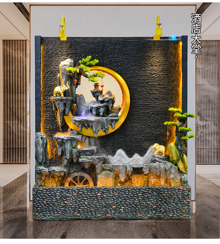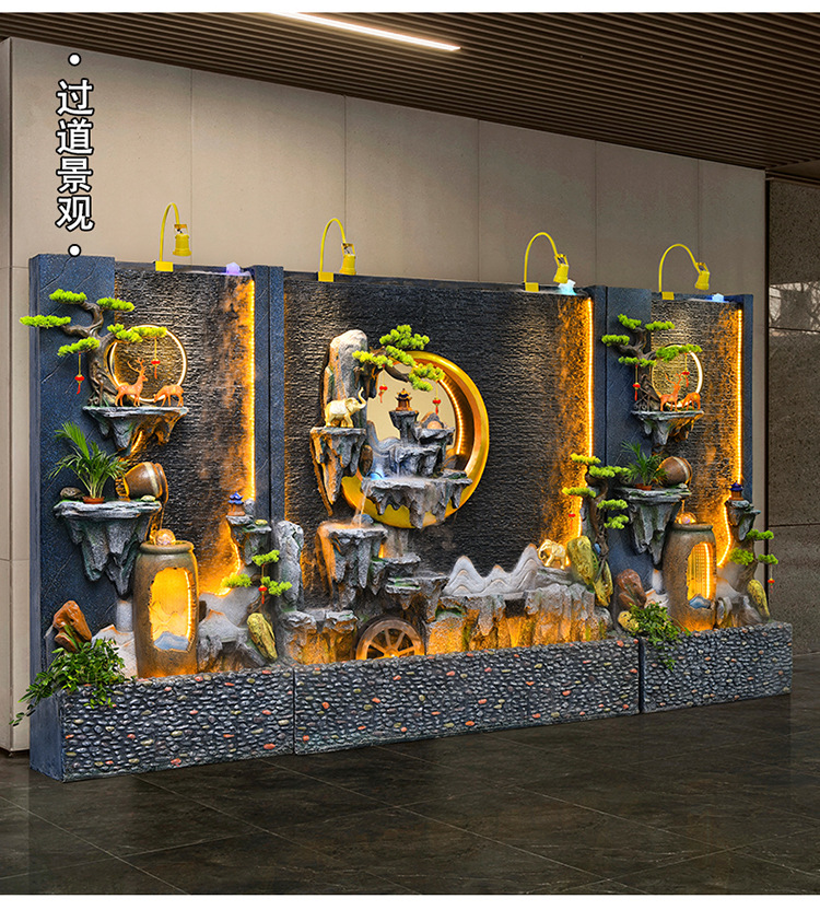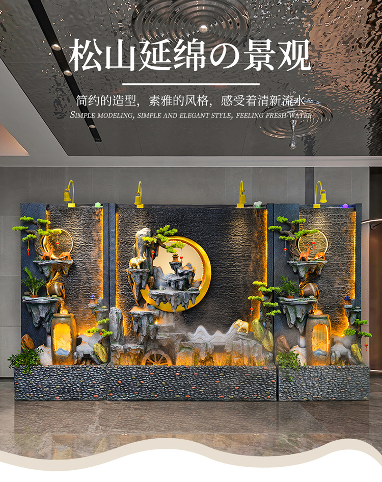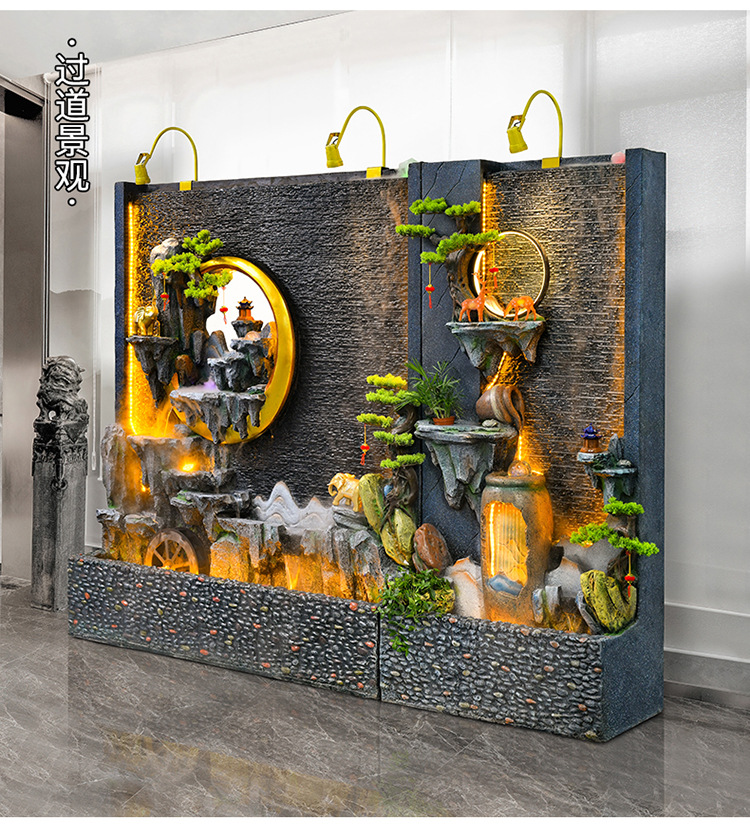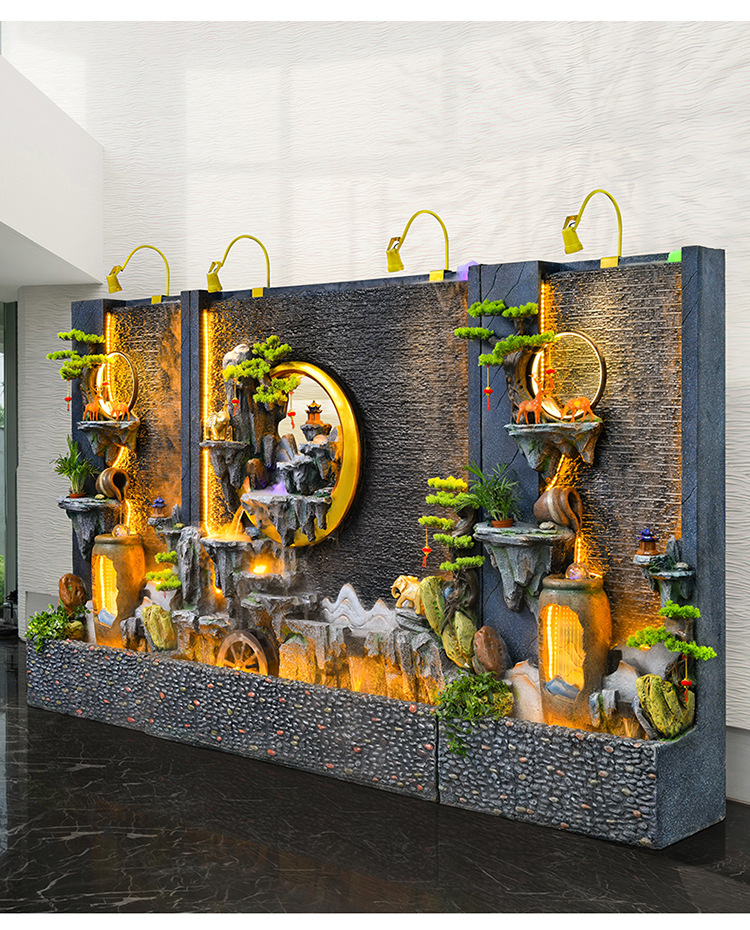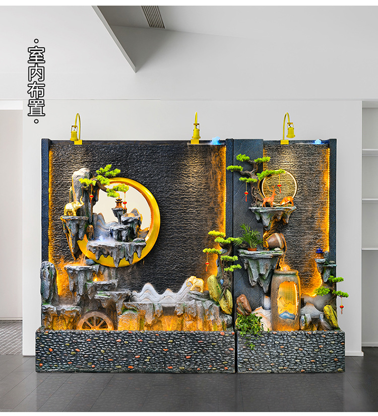 신중국식 바위 유수 분수 사무실 장식품 거실 물 커텐 월 플로어 풍경 안뜰 스크린 작성 재무 옷