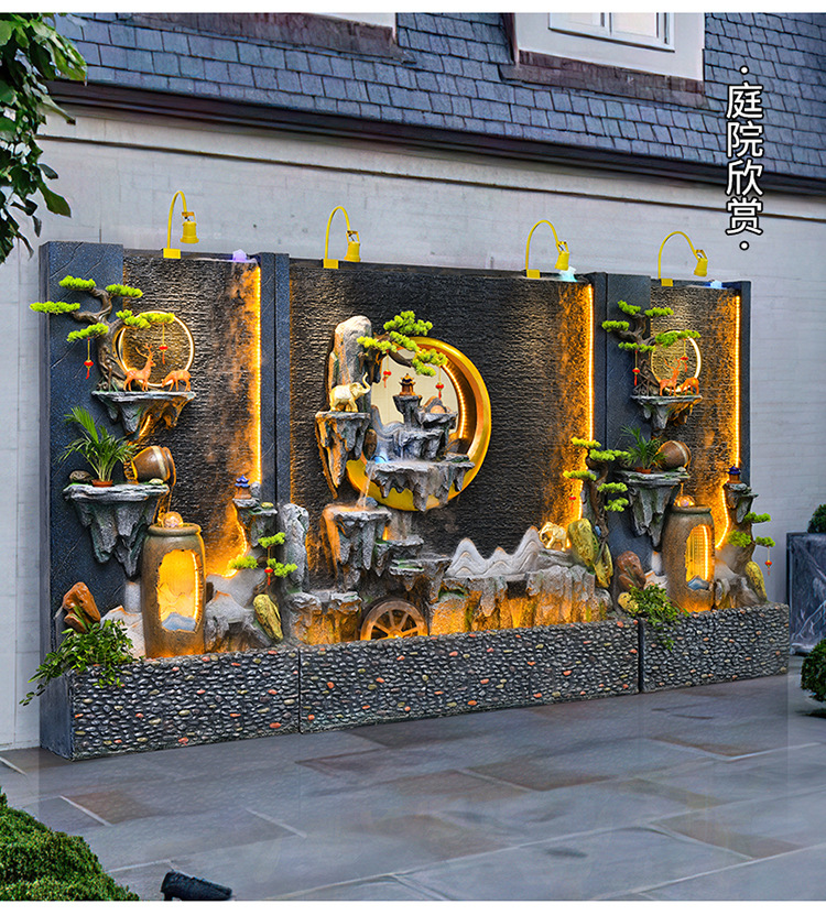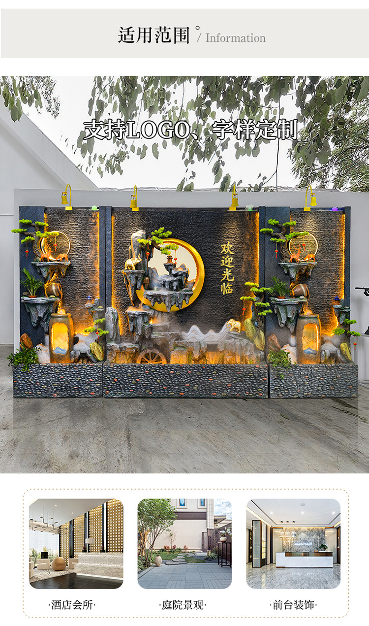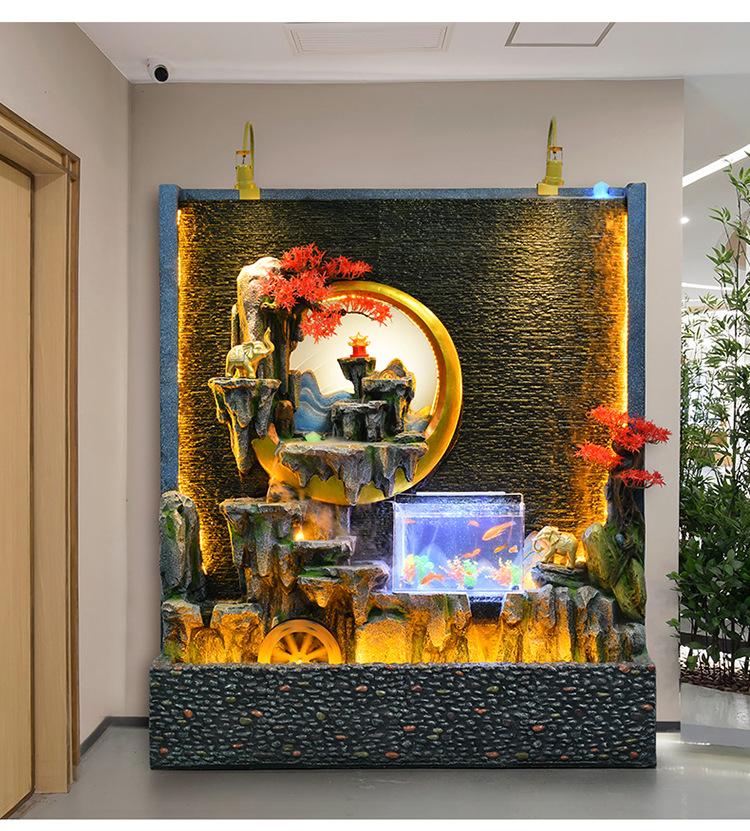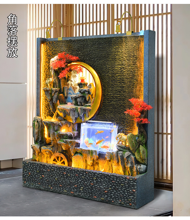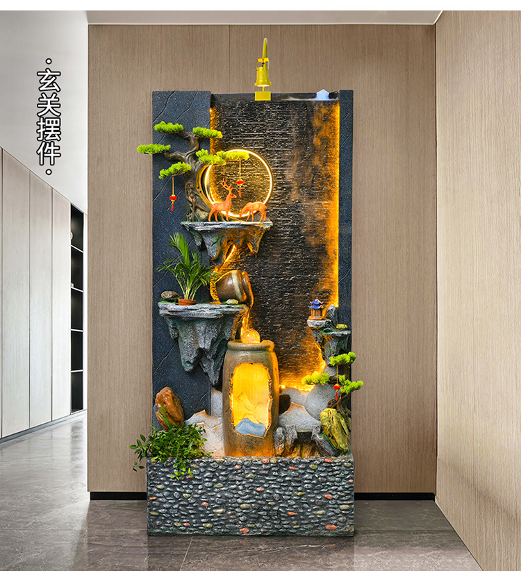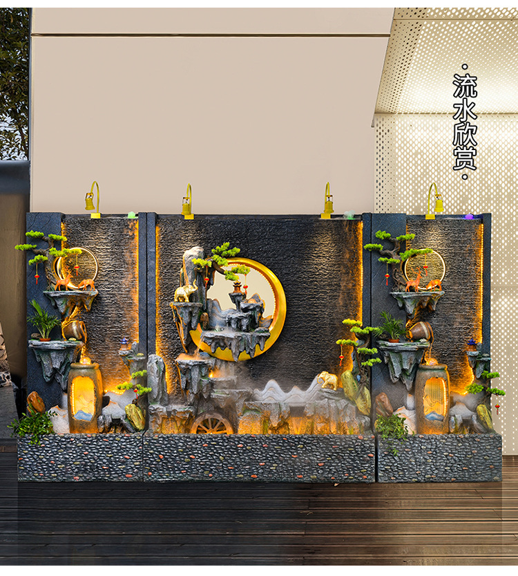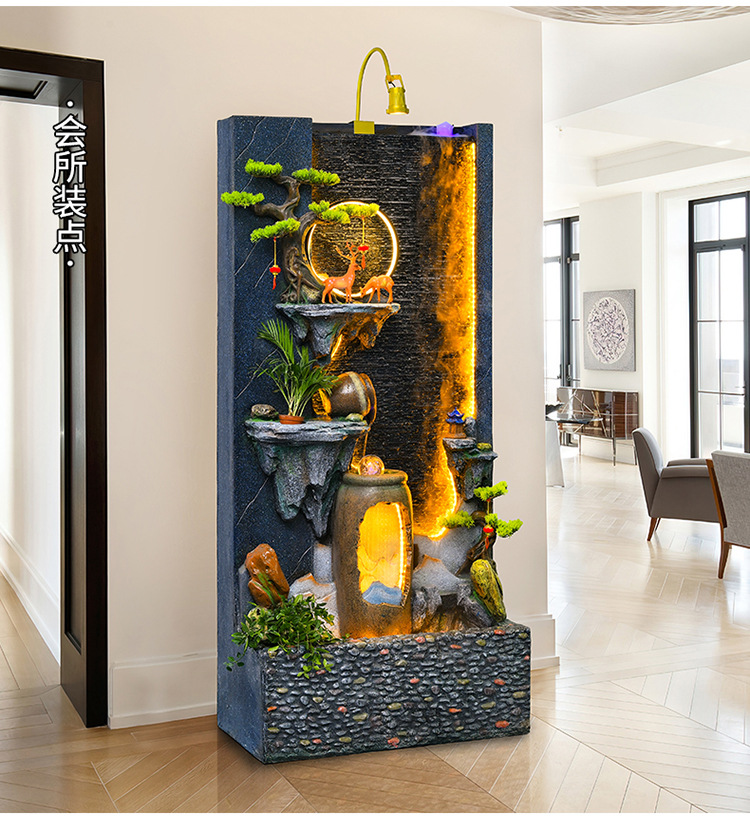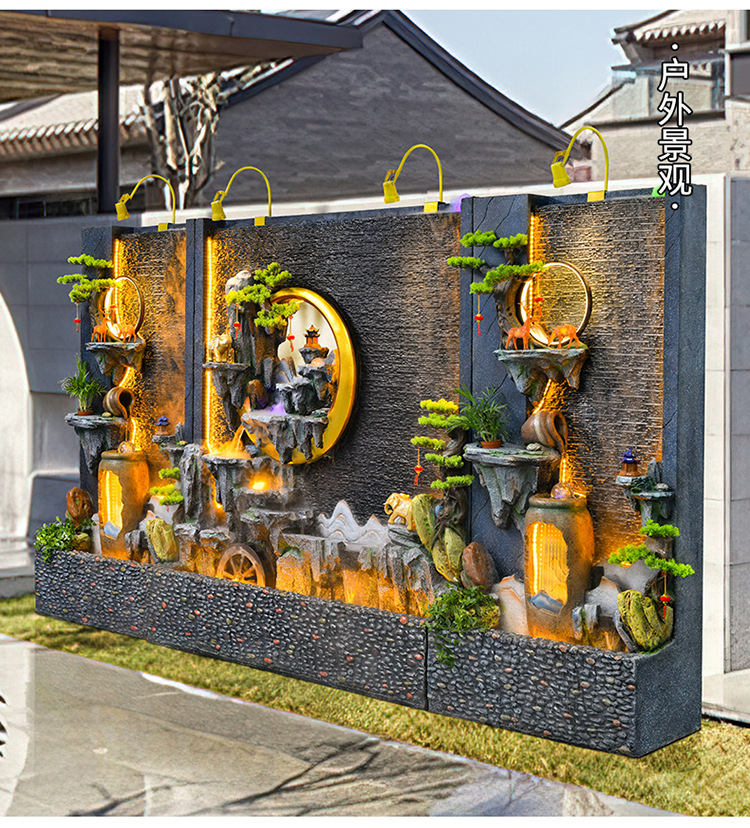 신중국식 바위 유수 분수 사무실 장식품 거실 물 커텐 월 플로어 풍경 안뜰 스크린 작성 재무 옷