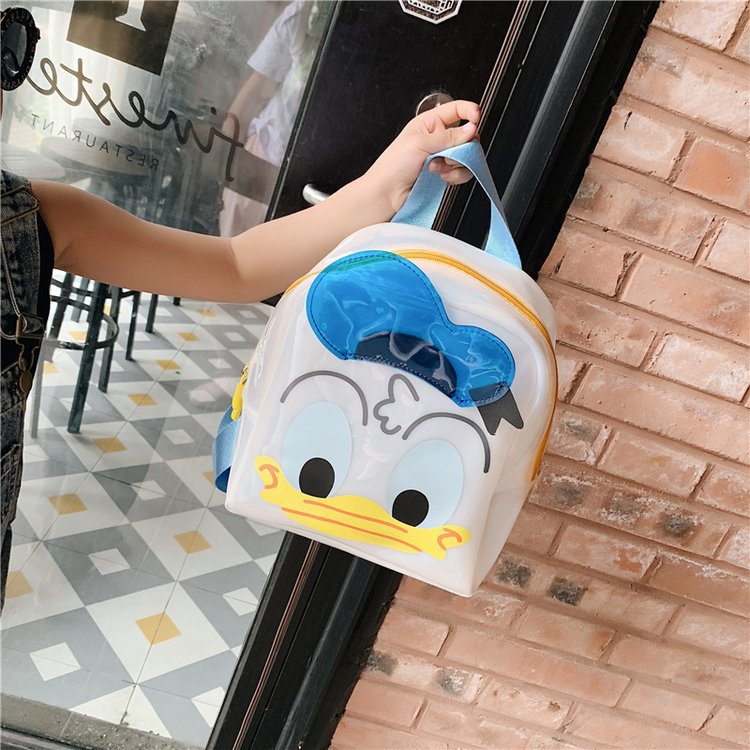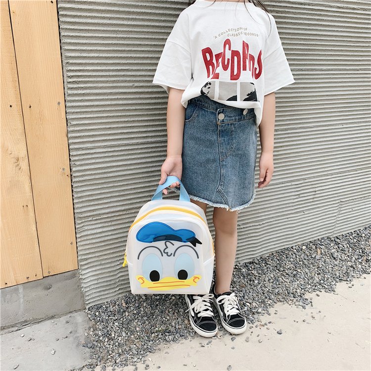 귀여운 만화 투명 작은 가방 여성의 2024 여름 새로운 오리 배낭 어린이 캐주얼 작은 학교 가방스토어 가기