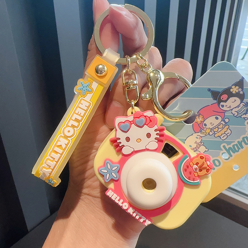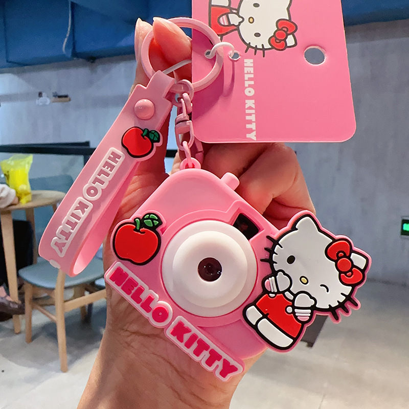 정품 만화 산리오 헬로키티 인형 표류 병 키 체인 옥 귀이 개 프로젝션 카메라 가방 펜던트스토어 가기