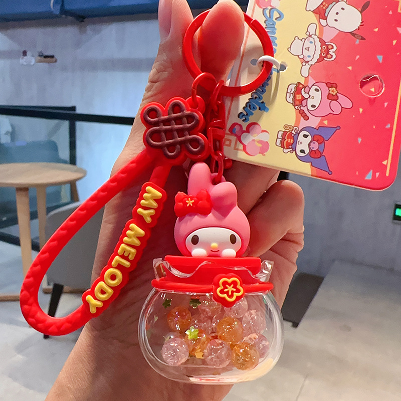 정품 만화 산리오 헬로키티 인형 표류 병 키 체인 옥 귀이 개 프로젝션 카메라 가방 펜던트