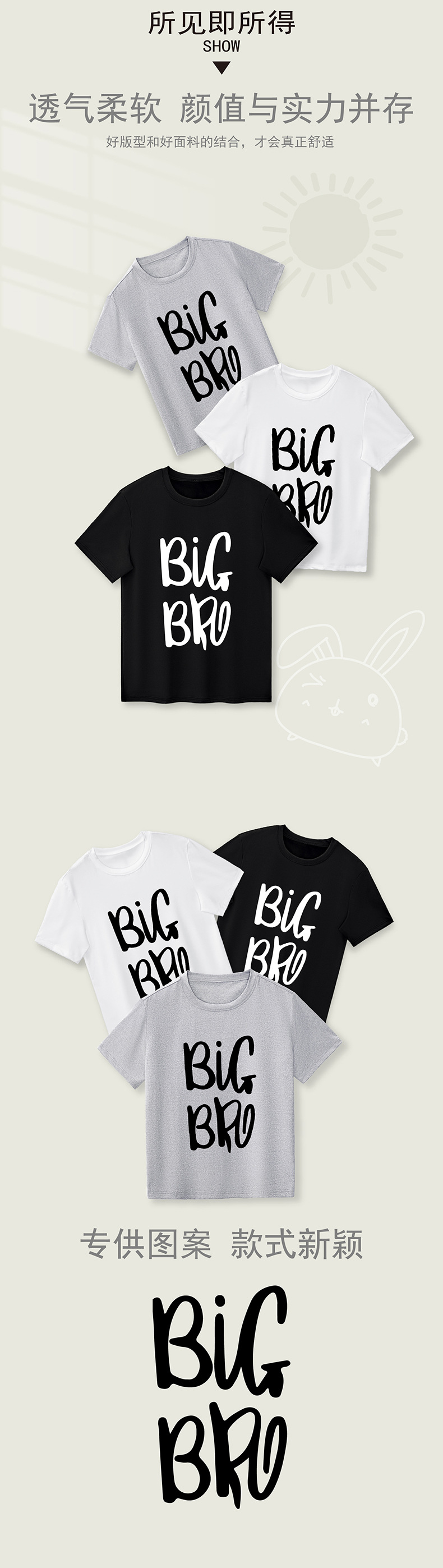 유럽과 미국 스타일 소년 "빅 브로" 반팔 티셔츠 라운드 넥 여름 캐주얼 아동복 폭발 어린이 티셔츠 대외 무역스토어 가기