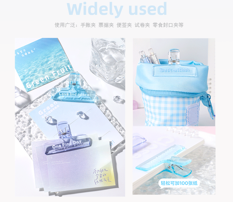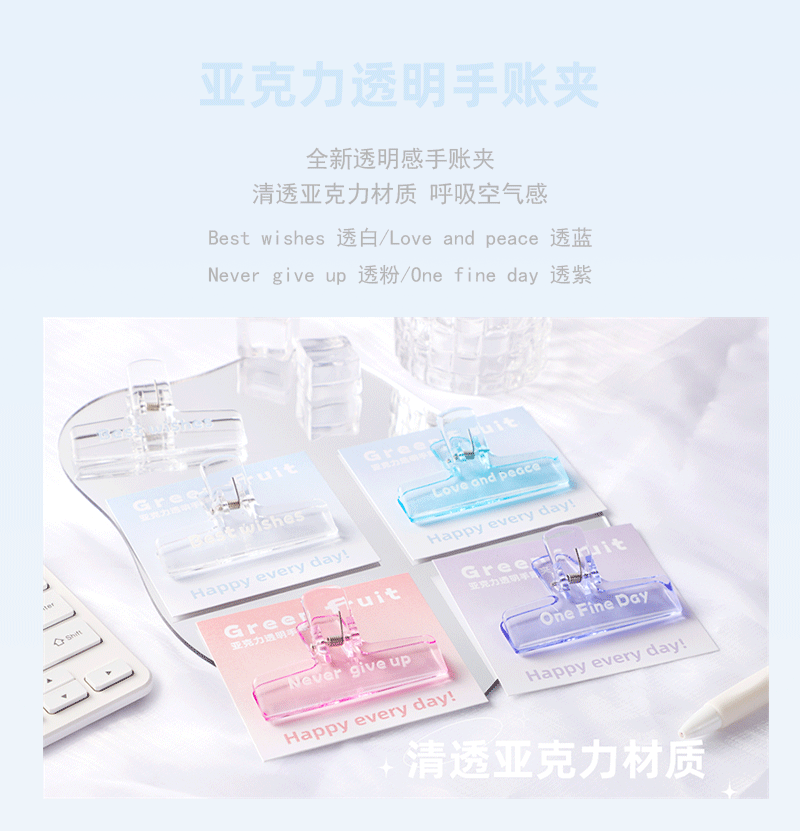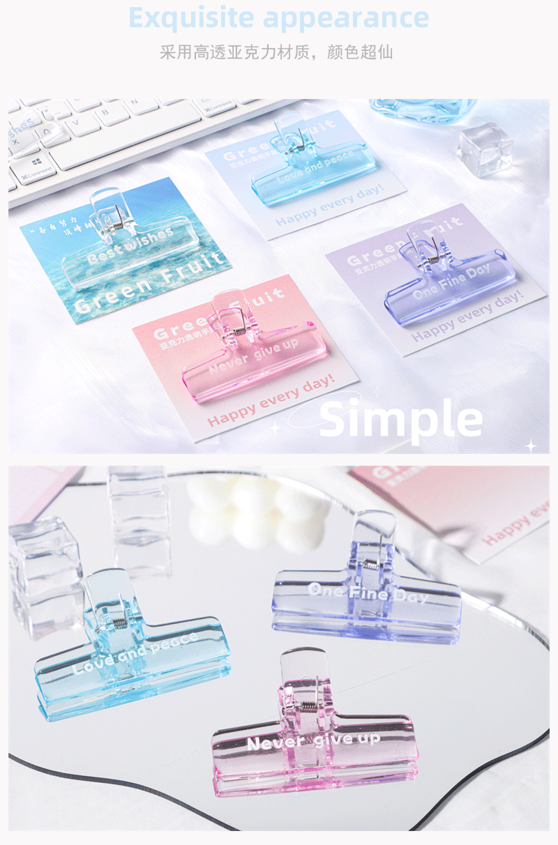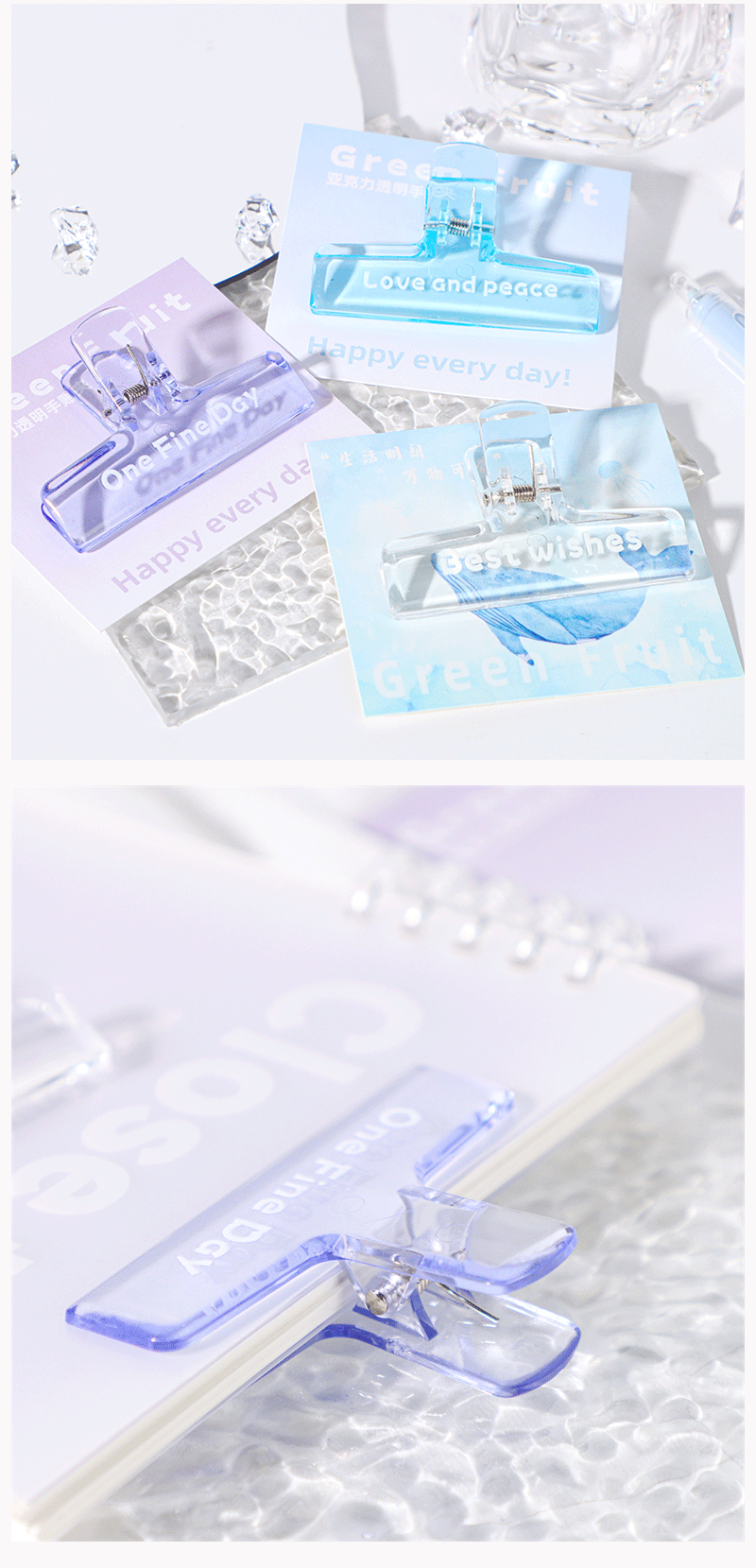 Ins Xiaohongshu 인기 아크릴 핸드북 클립 크리스탈 클립 메모 영수증 정보 시험지 문서 투명 클립