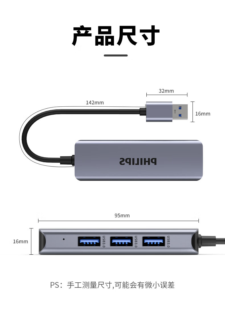 필립스 USB3.0-기가비트 포트 도킹 스테이션 분배기 노트북 케이블 어댑터 유선 네트워크 카드