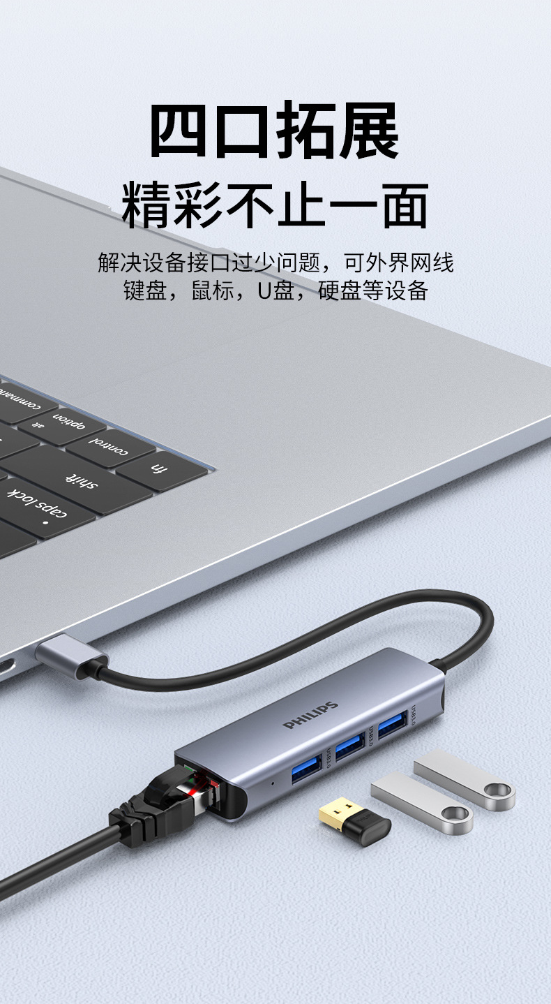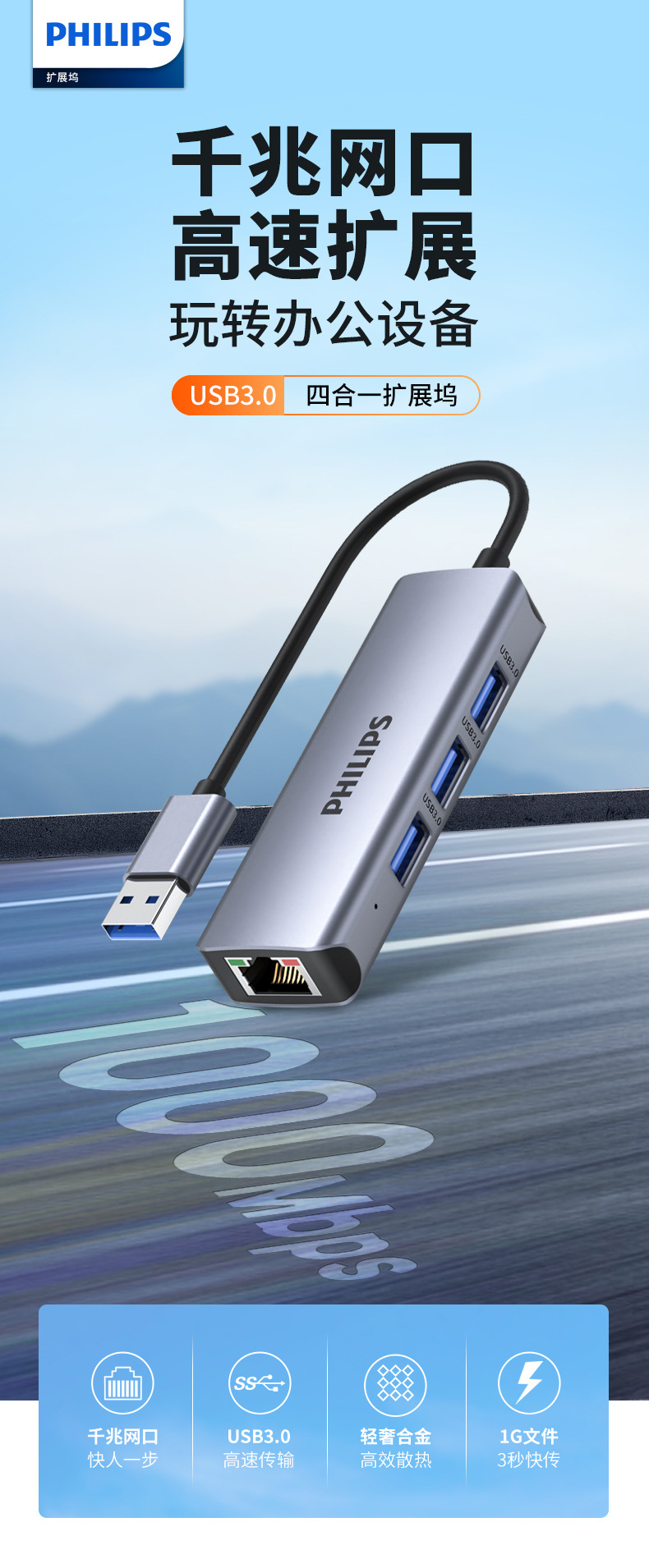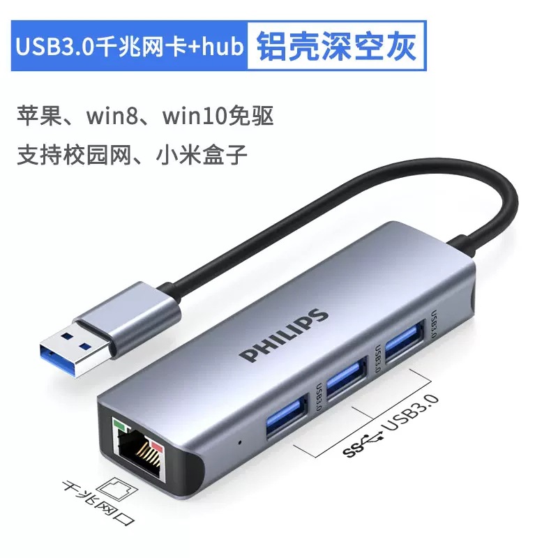 필립스 USB3.0-기가비트 포트 도킹 스테이션 분배기 노트북 케이블 어댑터 유선 네트워크 카드스토어 가기