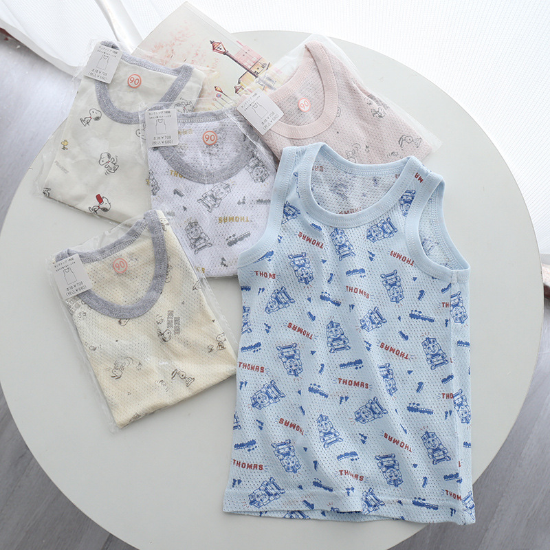 대외 무역 수출 원래 단일 여름 얇은 어린이 조끼 면 메쉬 소년과 소녀 아기 민소매 바닥 셔츠