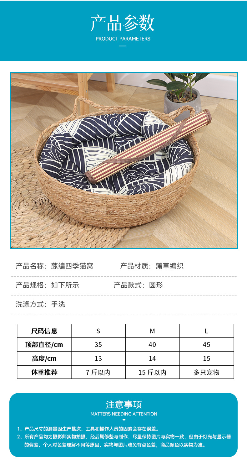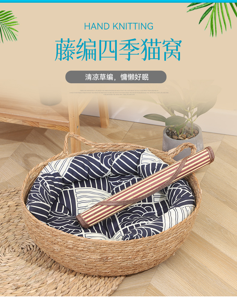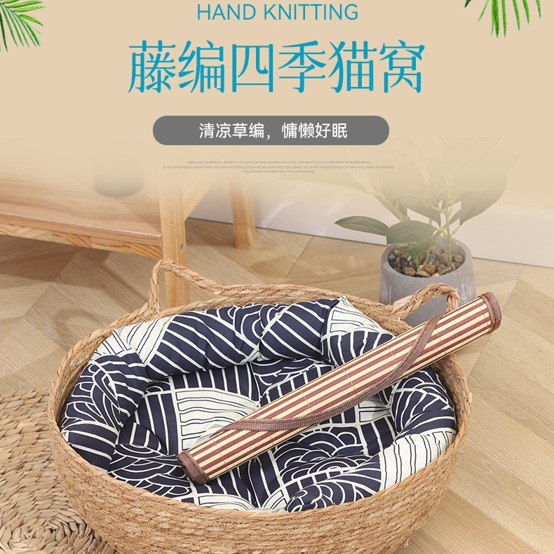 등나무 고양이 둥지 사계절 유니버설 손으로 짠 개집 고양이 스크래치 보드 가정용 고양이 패드 고양이 침대 고양이 둥지 여름 고양이 케이지스토어 가기