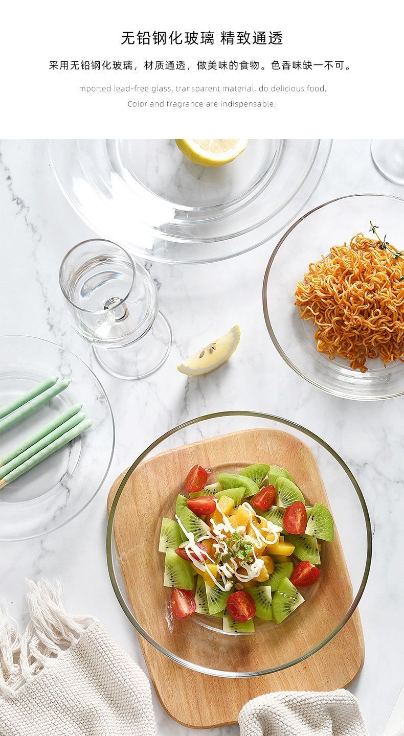 전자 레인지 가정용 깊은 입 과일 플레이트 샐러드 깊은 플레이트 고온 저항 투명 플레이트 강화 유리 플레이트
