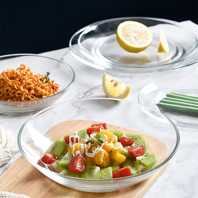 전자 레인지 가정용 깊은 입 과일 플레이트 샐러드 깊은 플레이트 고온 저항 투명 플레이트 강화 유리 플레이트스토어 가기