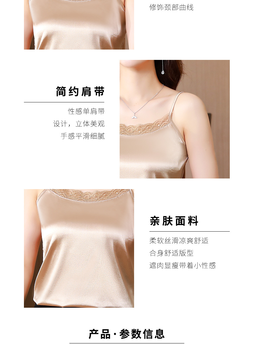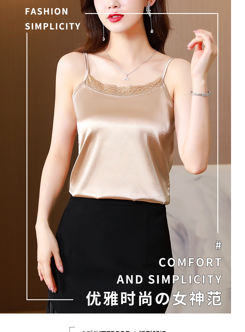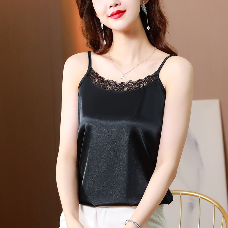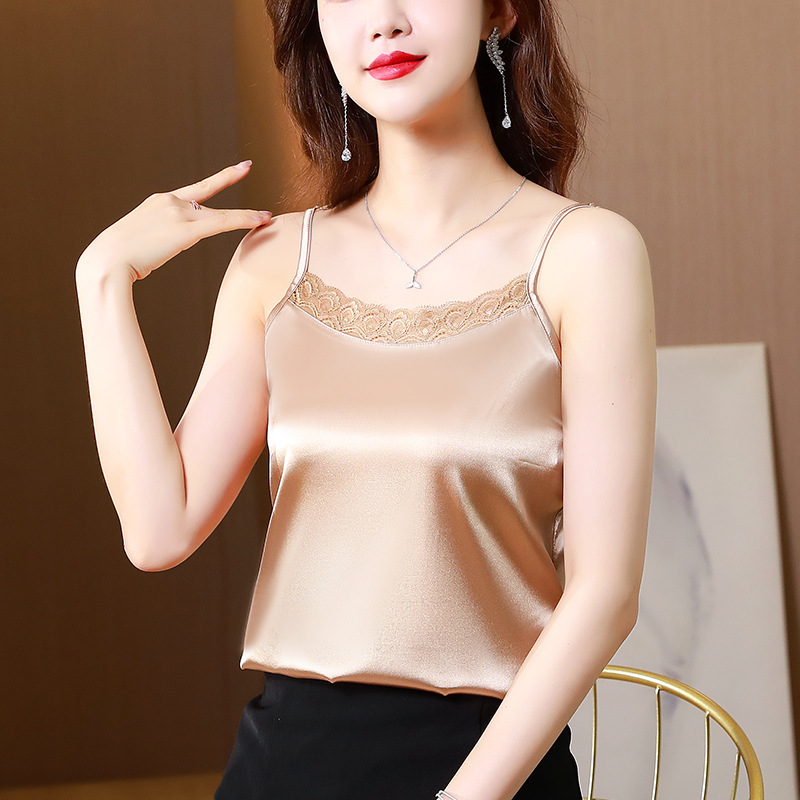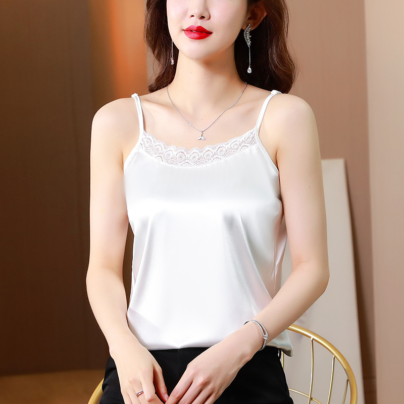 레이스 카미솔 여성의 여름 디자인 감각 큰 크기 외부 착용 새틴 유행베이스 셔츠 세트 내복 옷