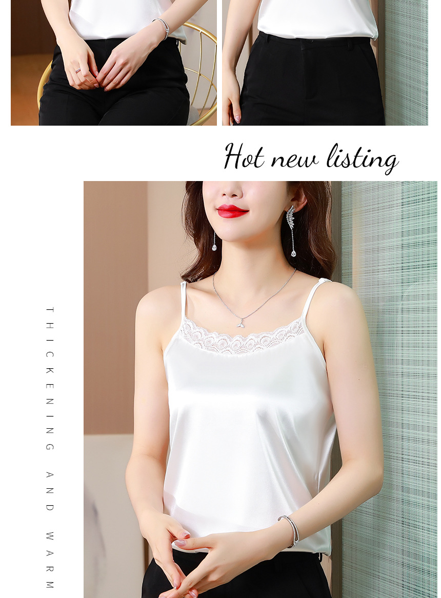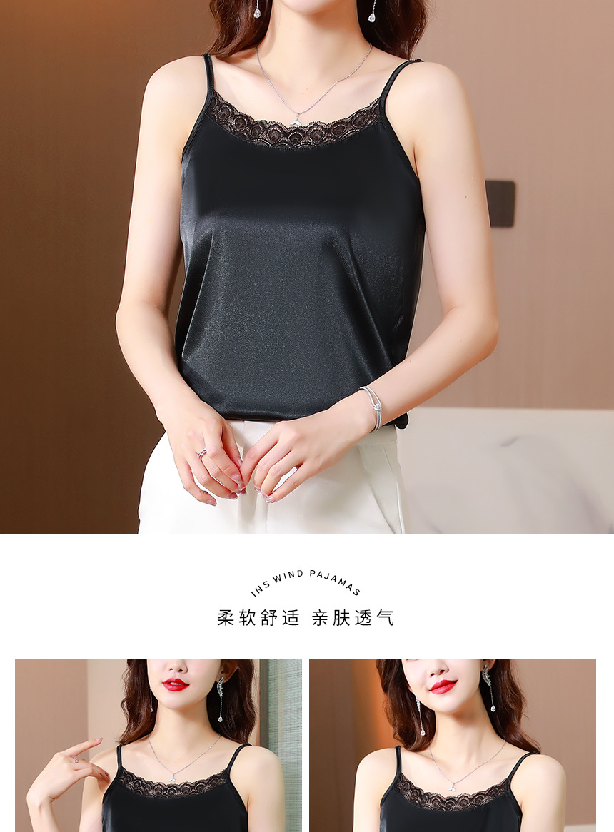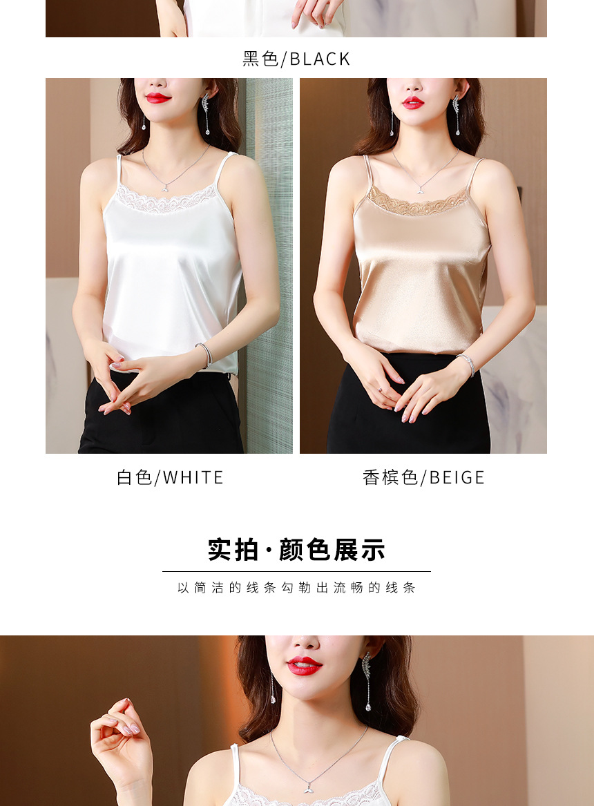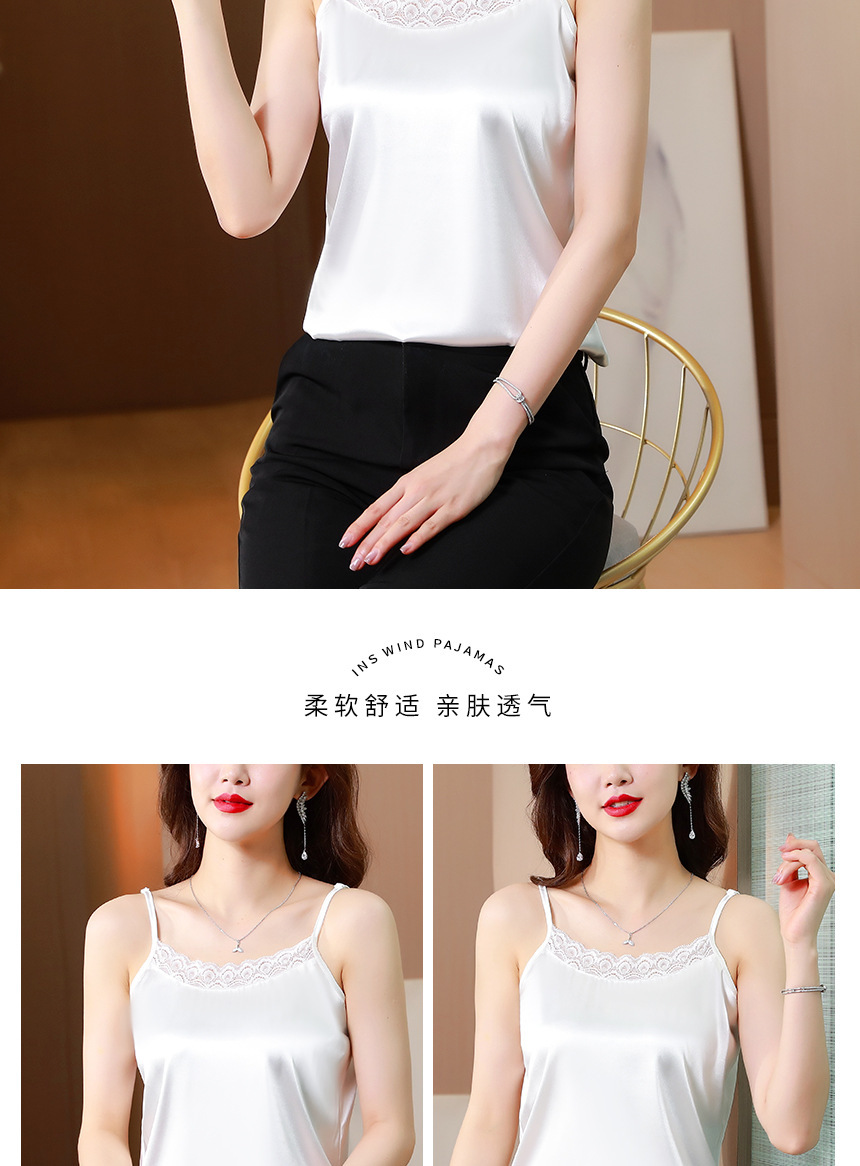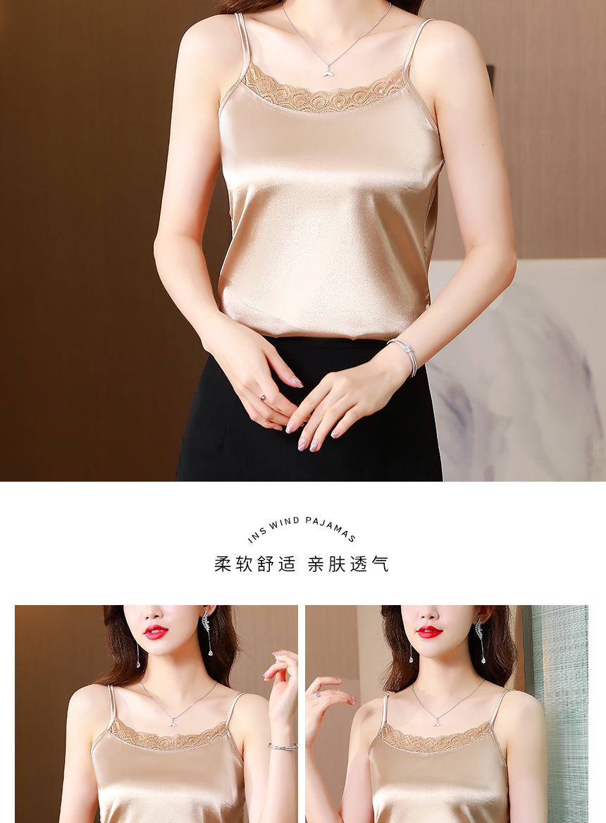 레이스 카미솔 여성의 여름 디자인 감각 큰 크기 외부 착용 새틴 유행베이스 셔츠 세트 내복 옷