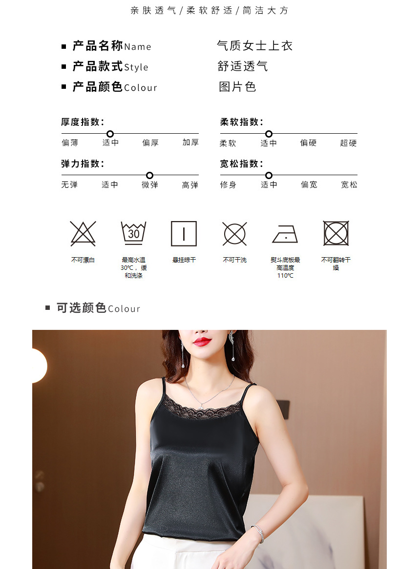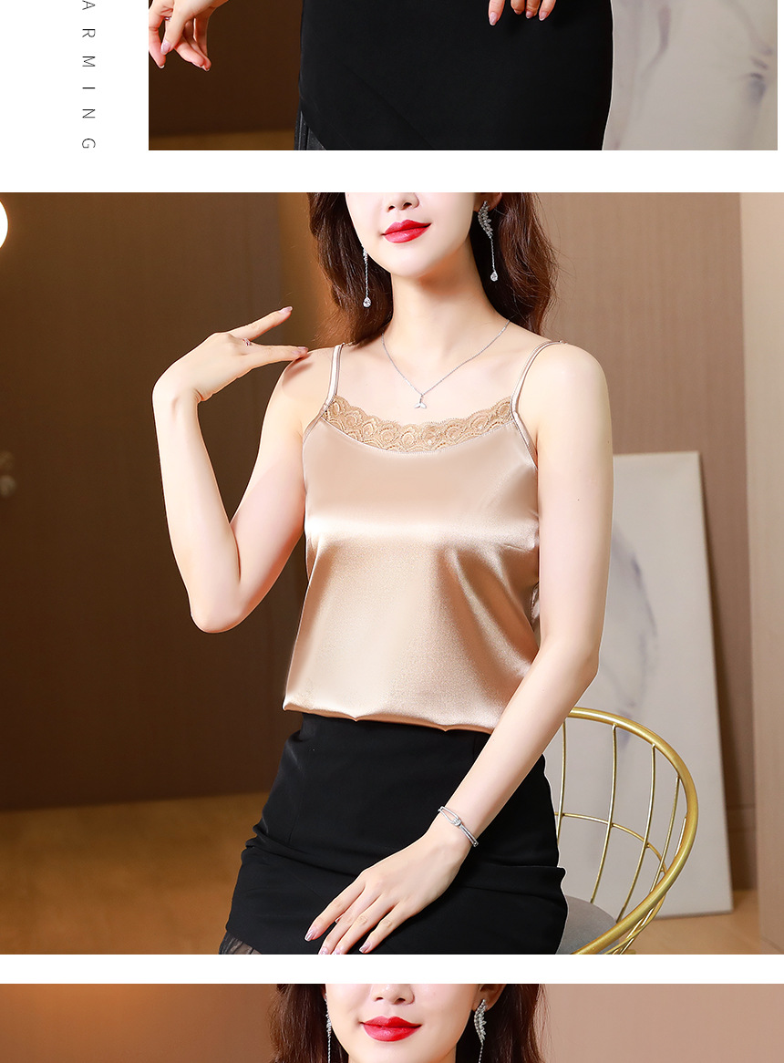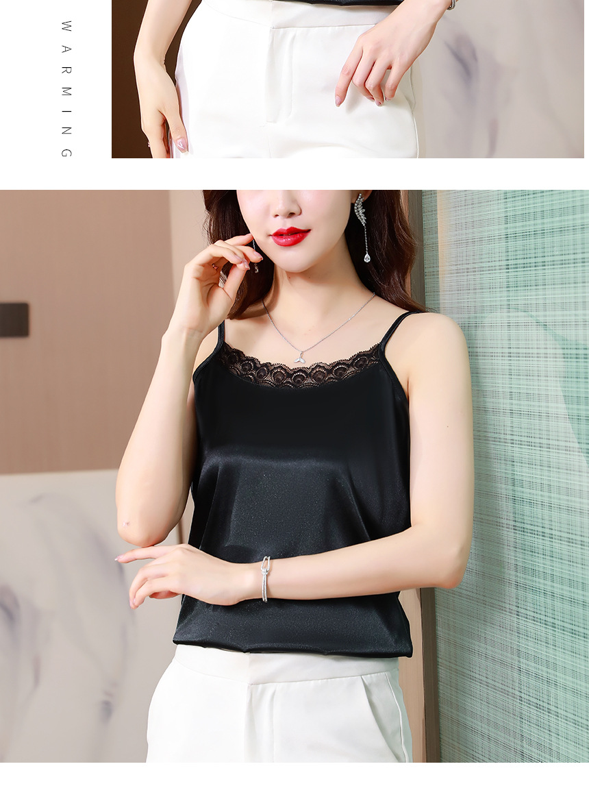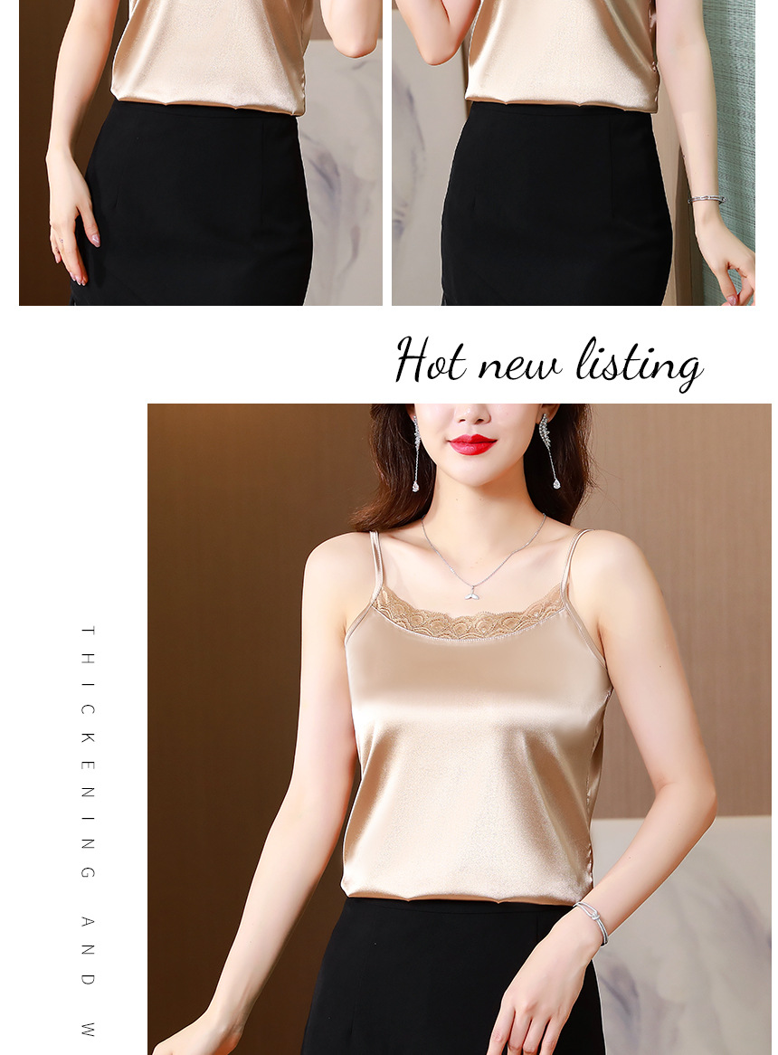 레이스 카미솔 여성의 여름 디자인 감각 큰 크기 외부 착용 새틴 유행베이스 셔츠 세트 내복 옷