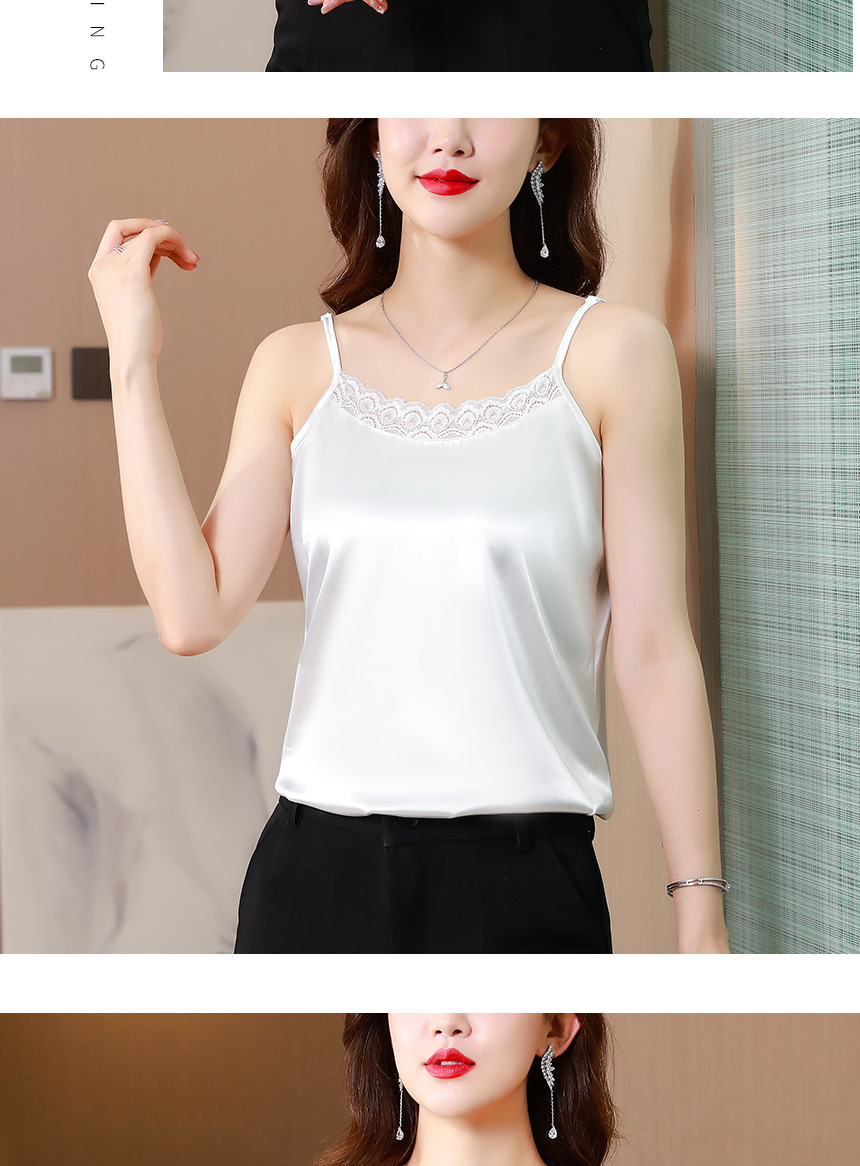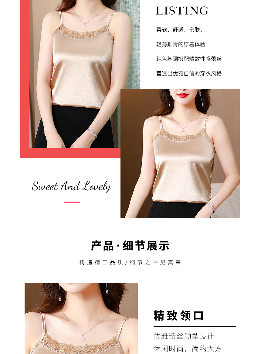 레이스 카미솔 여성의 여름 디자인 감각 큰 크기 외부 착용 새틴 유행베이스 셔츠 세트 내복 옷스토어 가기
