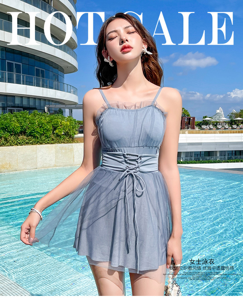 새로운 원피스 수영복 여성용 원피스 원피스 홀터 스커트 배꼽 커버 슬림 보수적 온천 리조트 해변 수영복 도매
