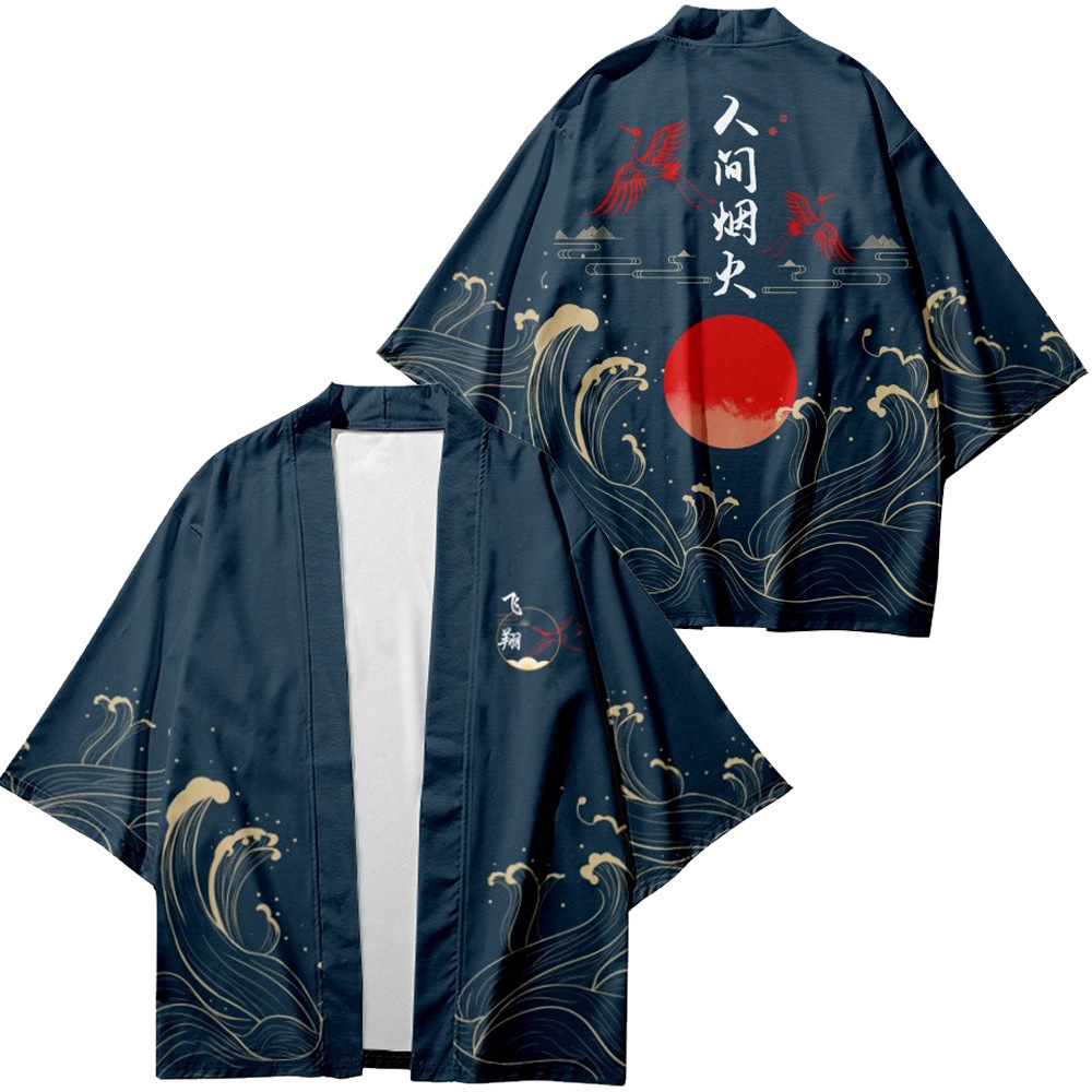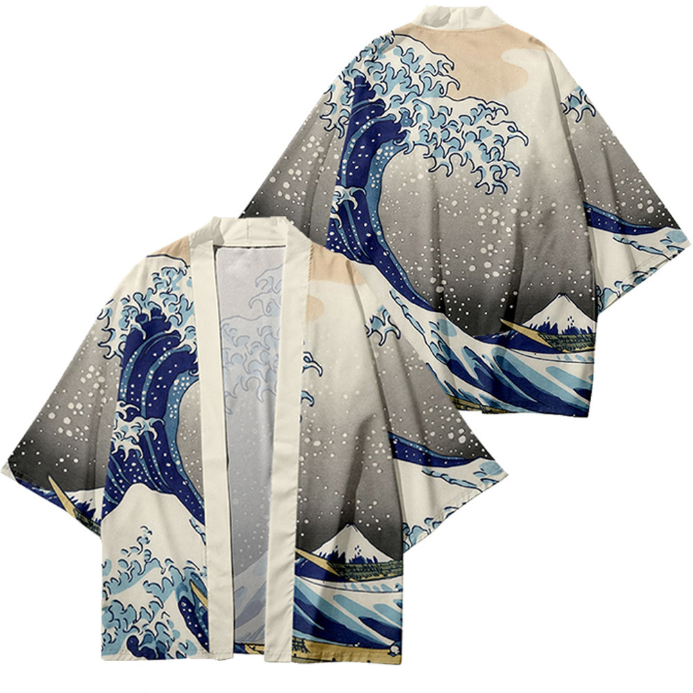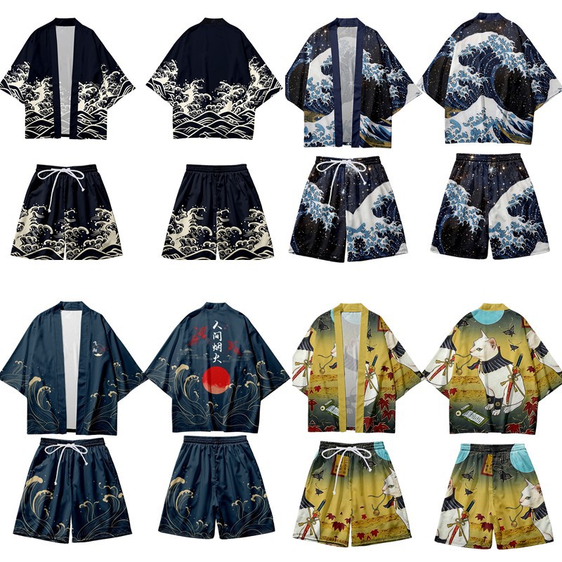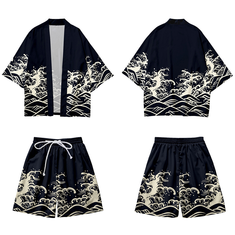 국풍 일본식 우키요에 여름 가디건 우키요에 망토 기모노 도복 3D 디지털 프린팅 직판스토어 가기