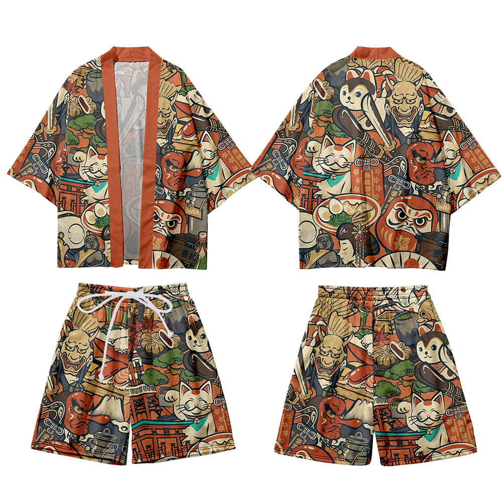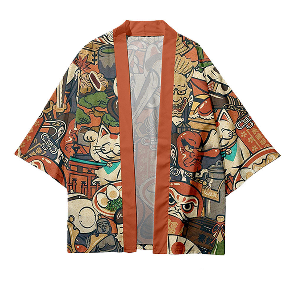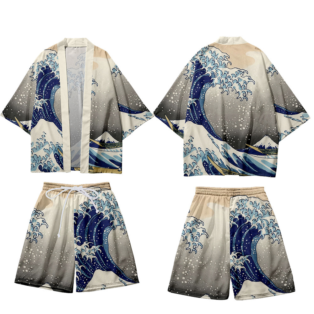 국풍 일본식 우키요에 여름 가디건 우키요에 망토 기모노 도복 3D 디지털 프린팅 직판스토어 가기