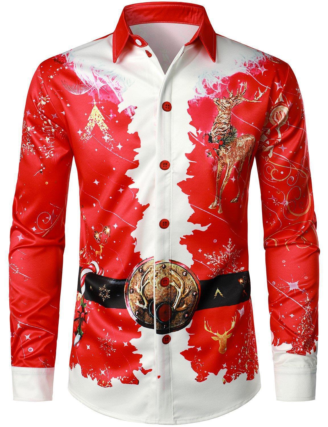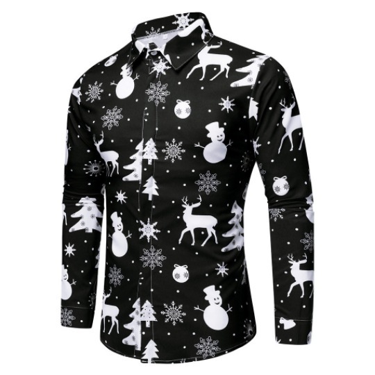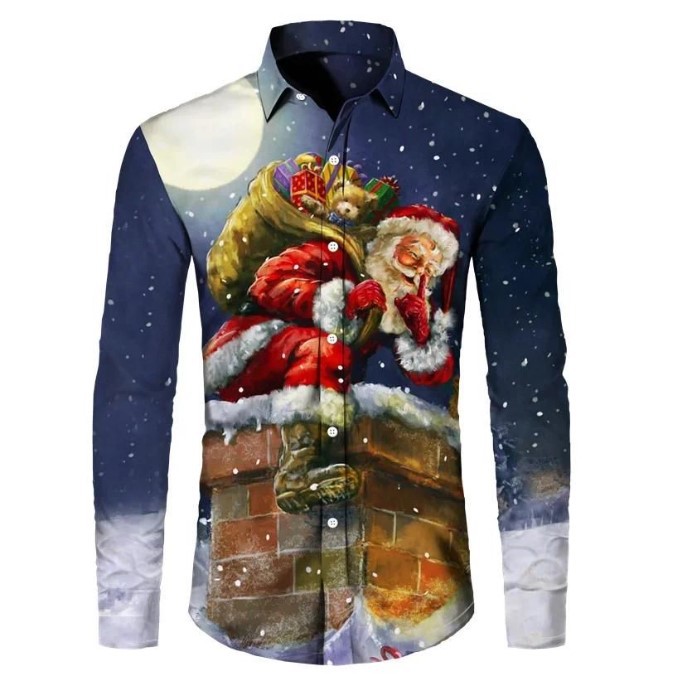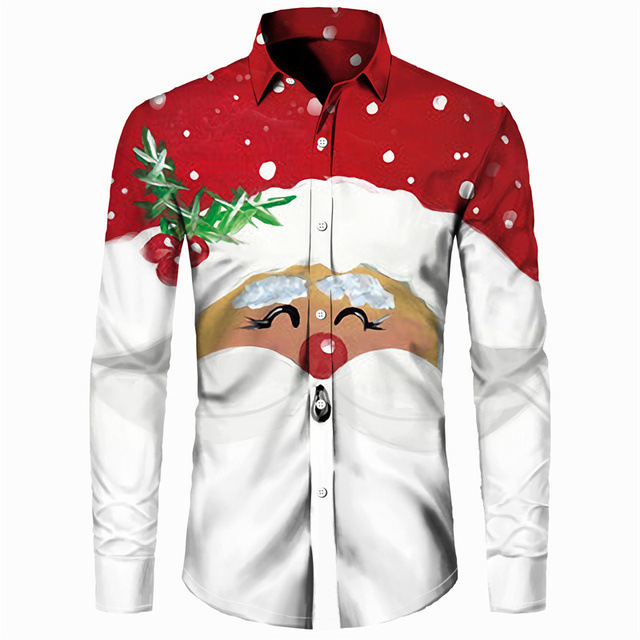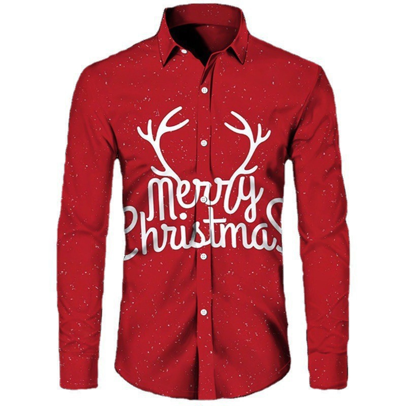 가을 2022 크로스 보더 독립 역 뜨거운 판매 하와이 크리스마스 시리즈 남성용 3D 인쇄 캐주얼 긴 소매 셔츠