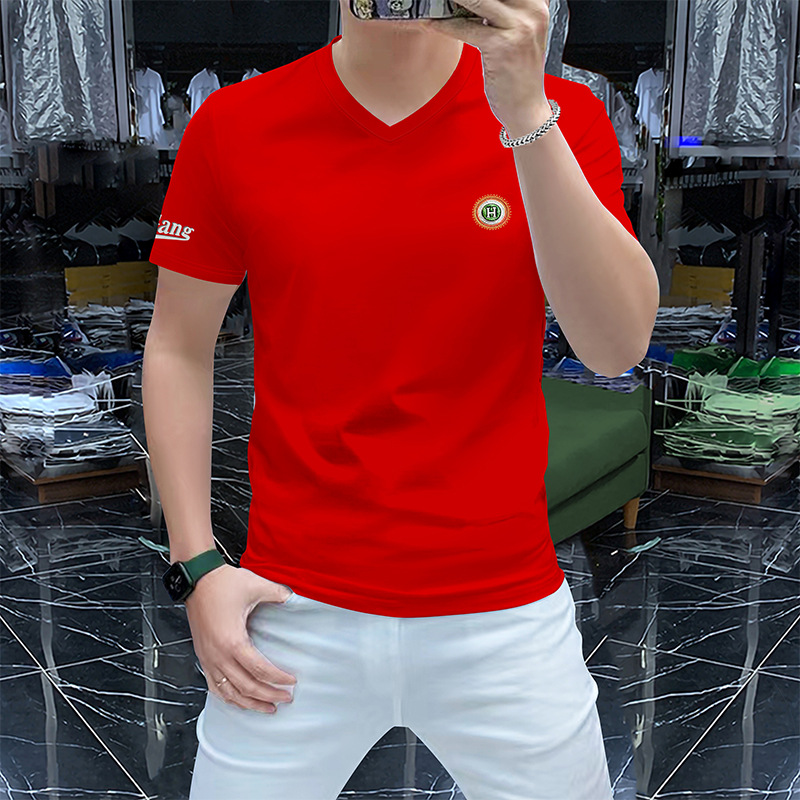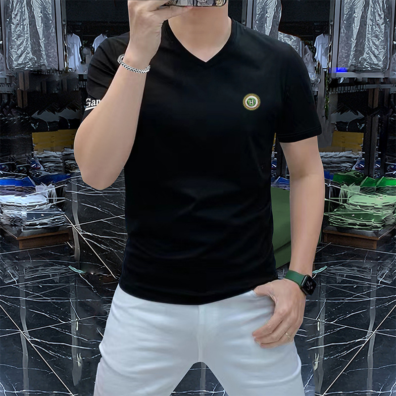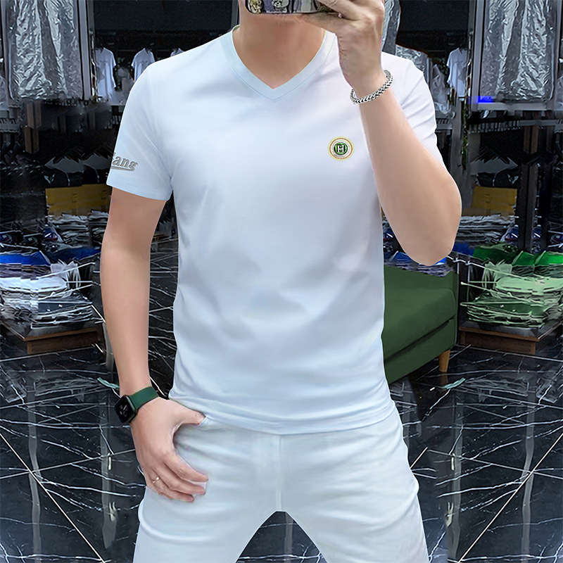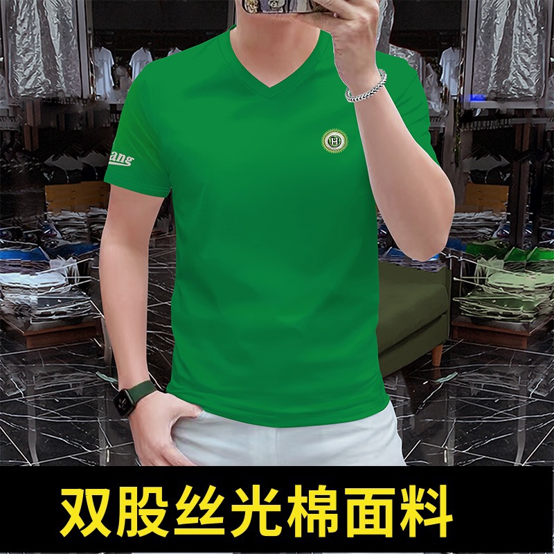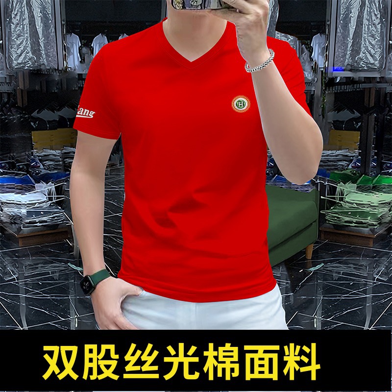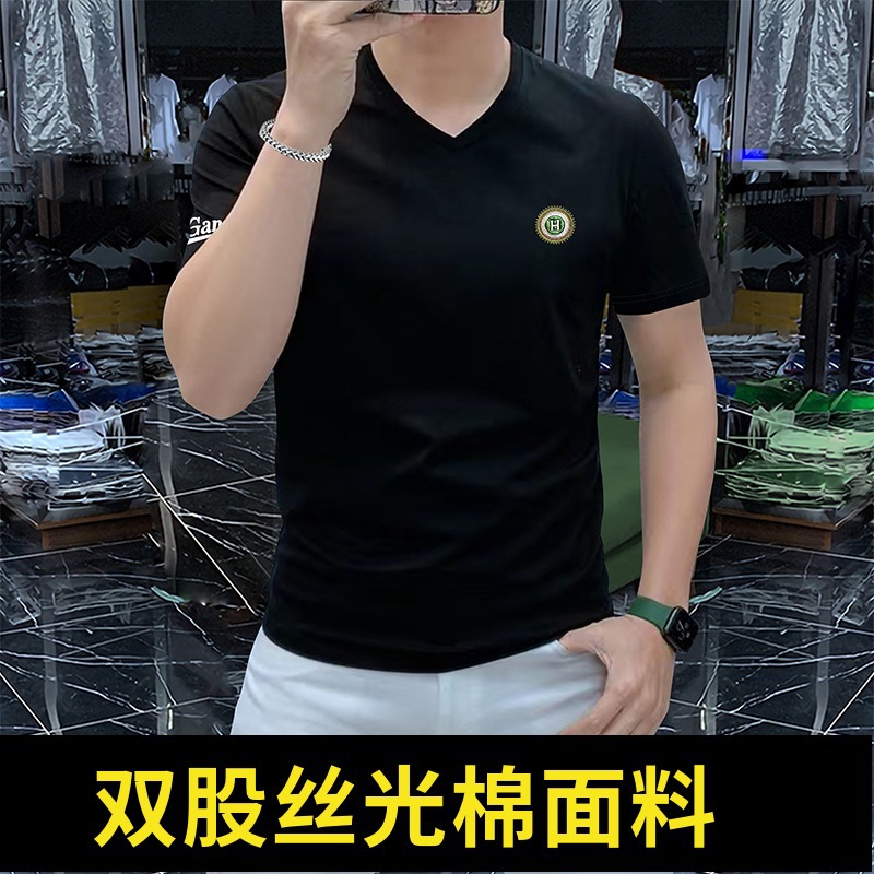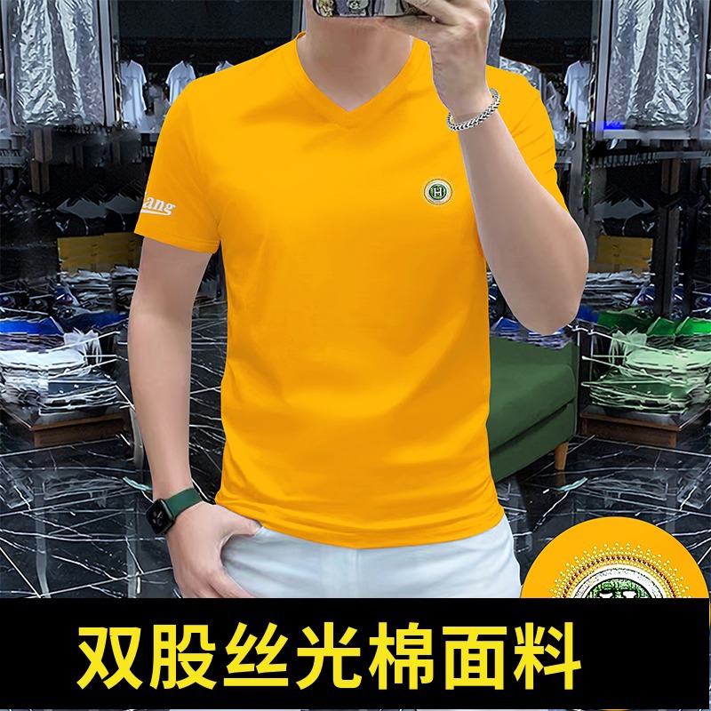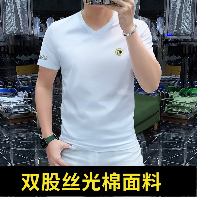 2023 여름 새로운 반팔 남성 티셔츠 브이넥 고급형 얇은 머서라이즈드 코튼 남성용 복숭아 칼라 반팔 슬림핏 트렌디스토어 가기