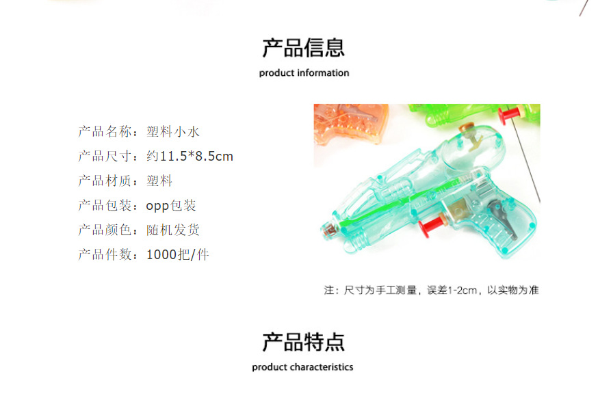 새로운 만화 작은 물총 어린이 여름 장난감 물 놀이 장난감 실행 남자의 같은 투명 물총 장난감 총