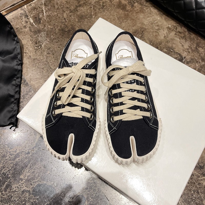 [재고] 스플릿 토 슈즈 여성용 호스슈 돼지 트로터 기어 바닥 캔버스 신발 레이스 업 캐주얼 보드 신발 세대