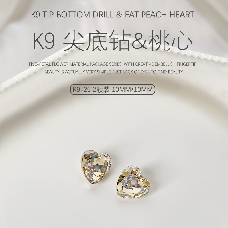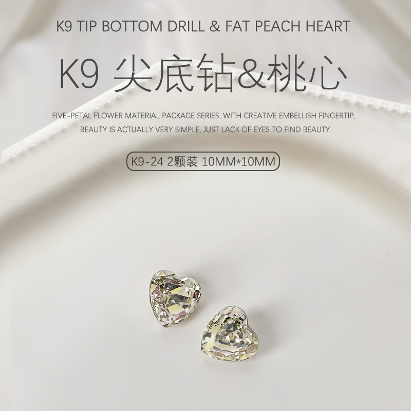 K9 네일 아트 장식품 하트 모양 K9 다이아몬드 러브 포인트 다이아몬드 다각형 다이아몬드 반짝이는 다이아몬드 다면체 고급 네일 장식 2개입스토어 가기