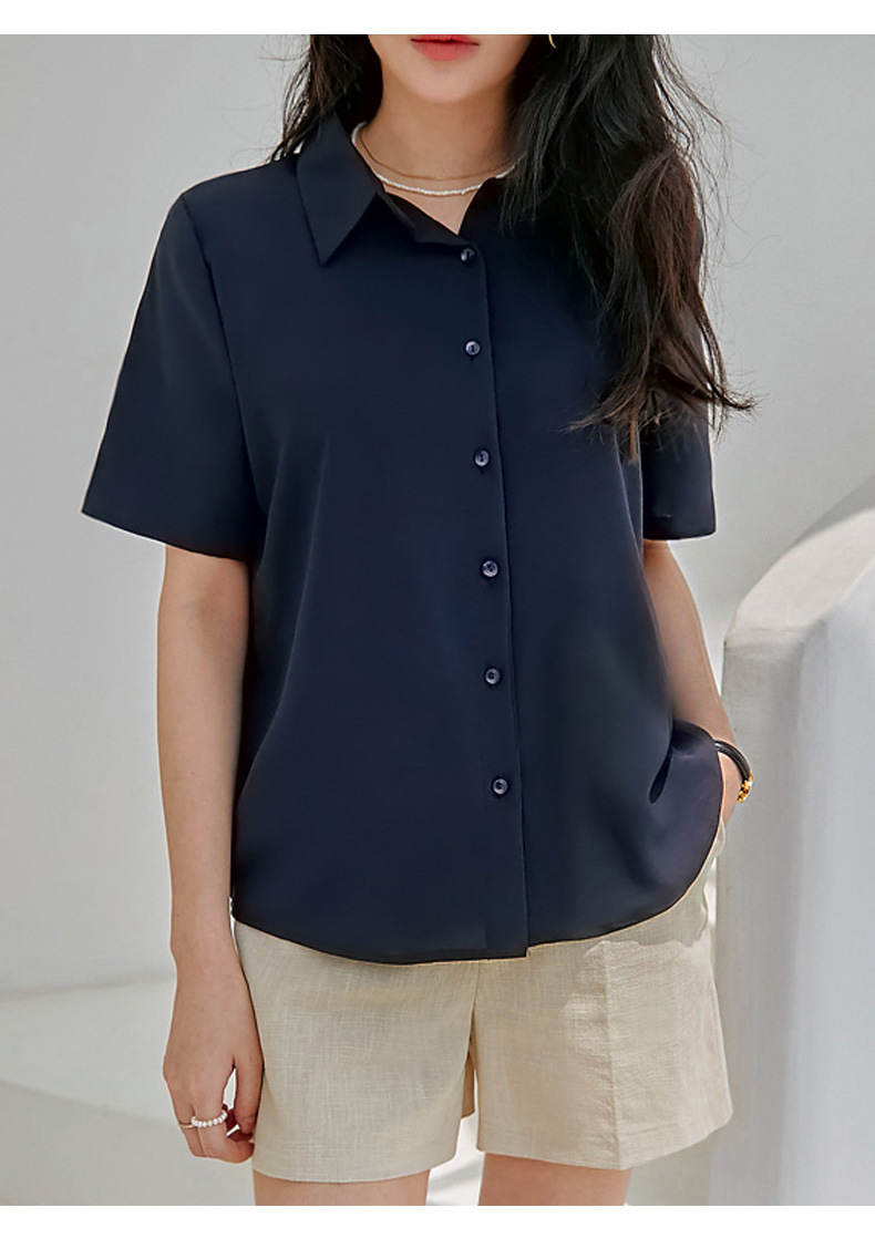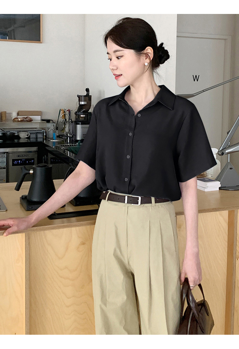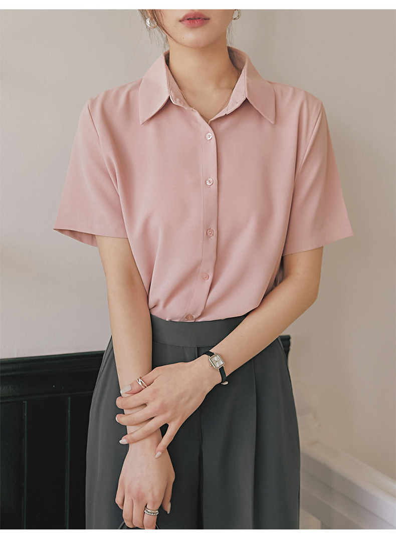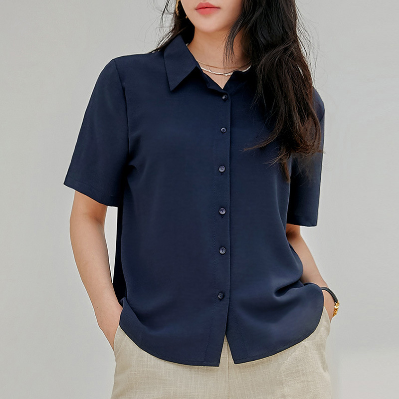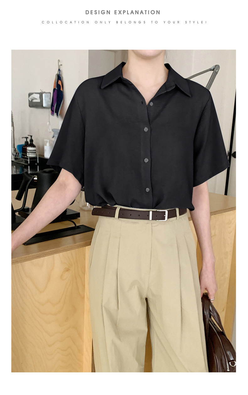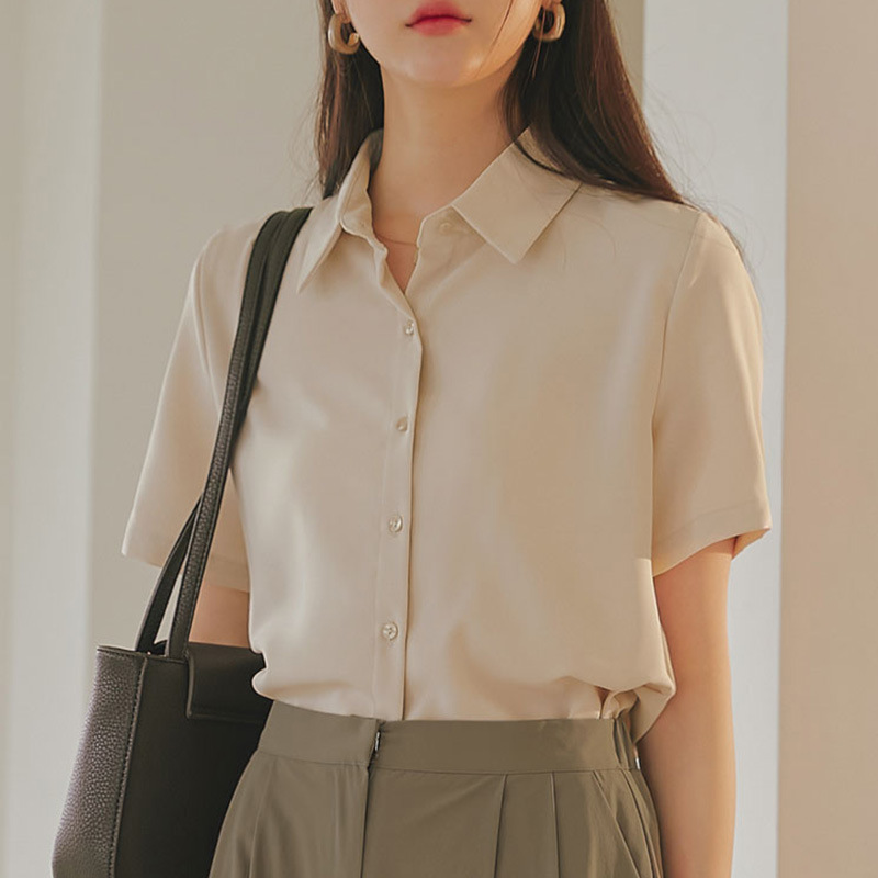 여성용 여름 반팔 셔츠, 틈새 루즈, 일본식, 다용도, 드레이프, 전문 기질, 포멀 탑 셔츠