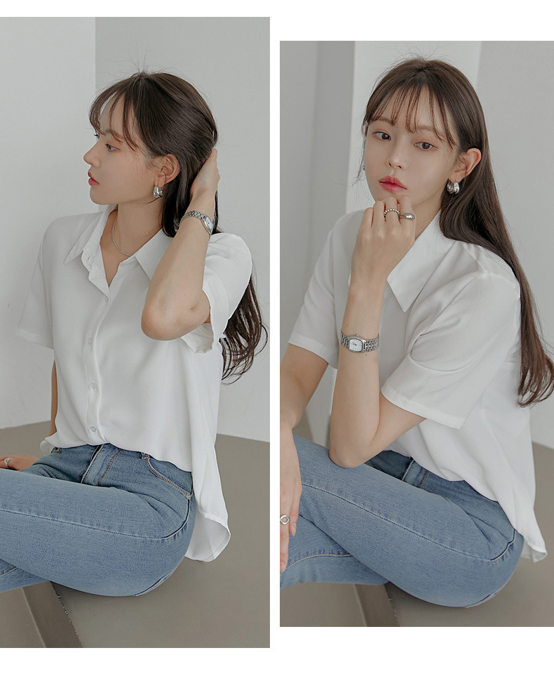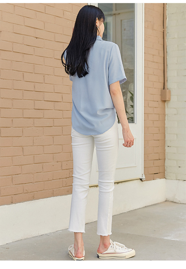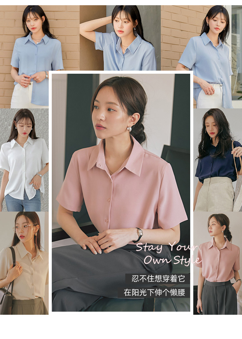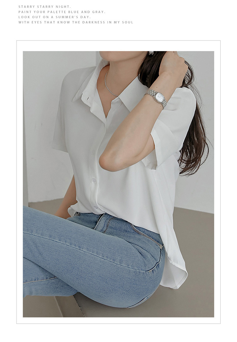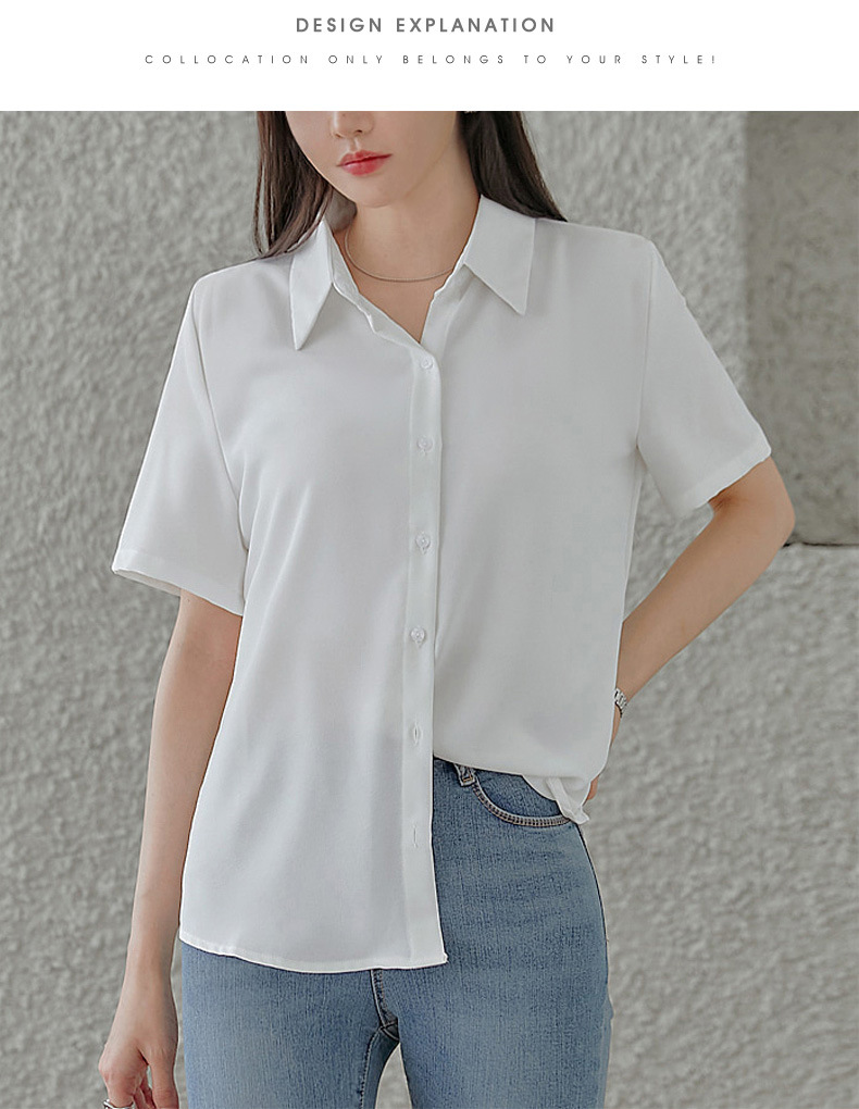 여성용 여름 반팔 셔츠, 틈새 루즈, 일본식, 다용도, 드레이프, 전문 기질, 포멀 탑 셔츠