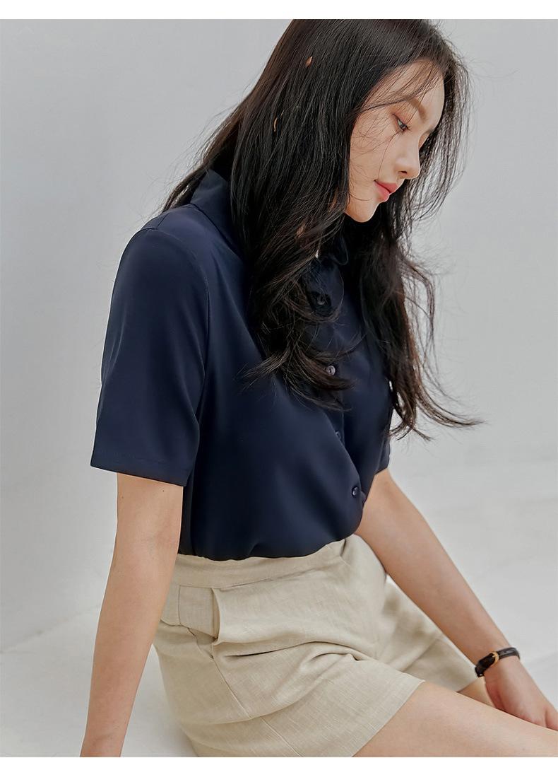 여성용 여름 반팔 셔츠, 틈새 루즈, 일본식, 다용도, 드레이프, 전문 기질, 포멀 탑 셔츠스토어 가기
