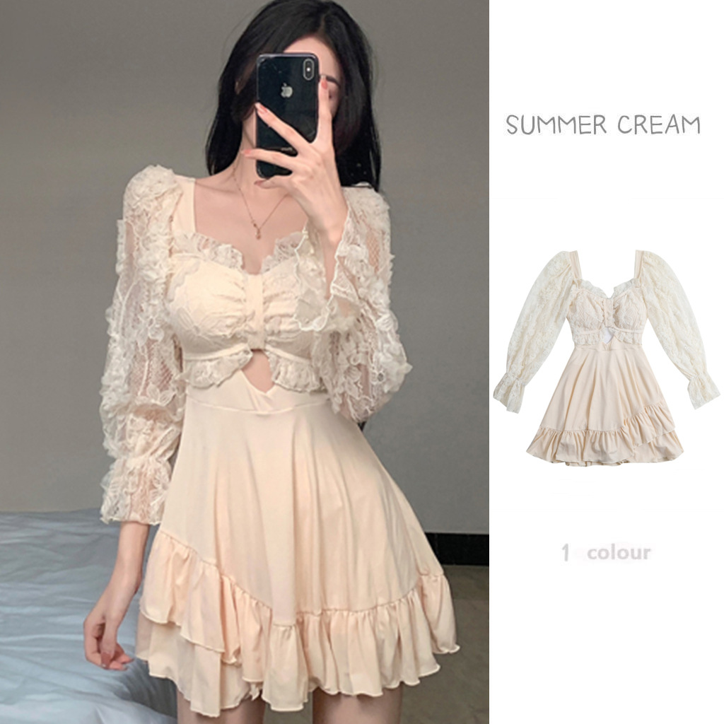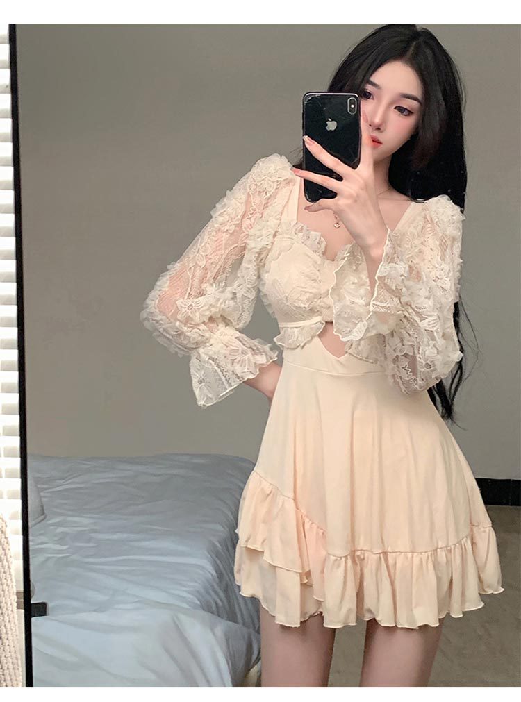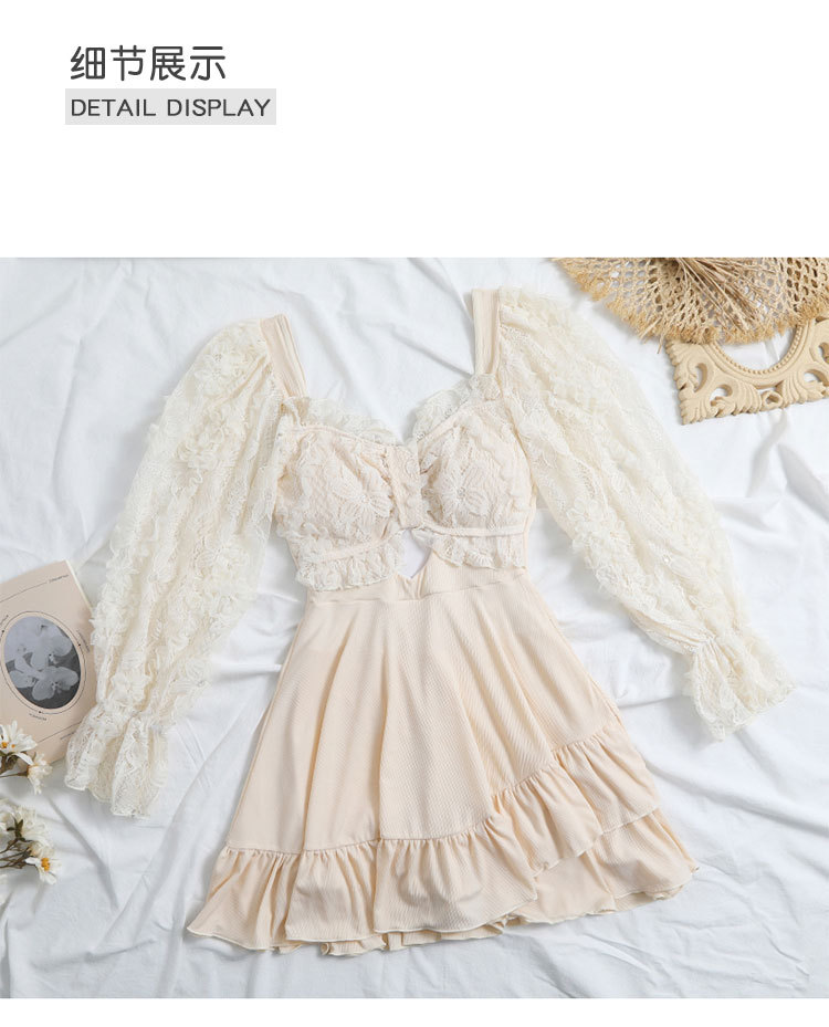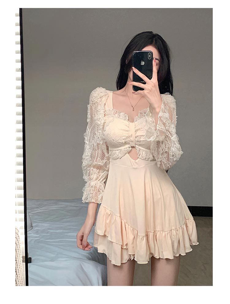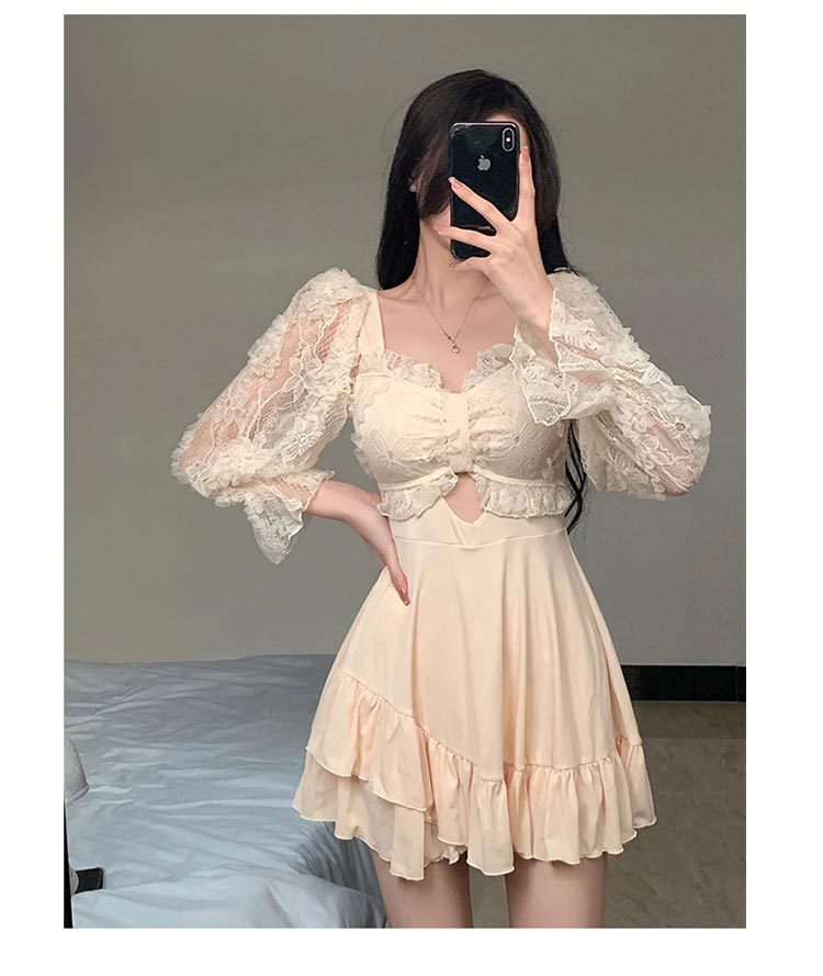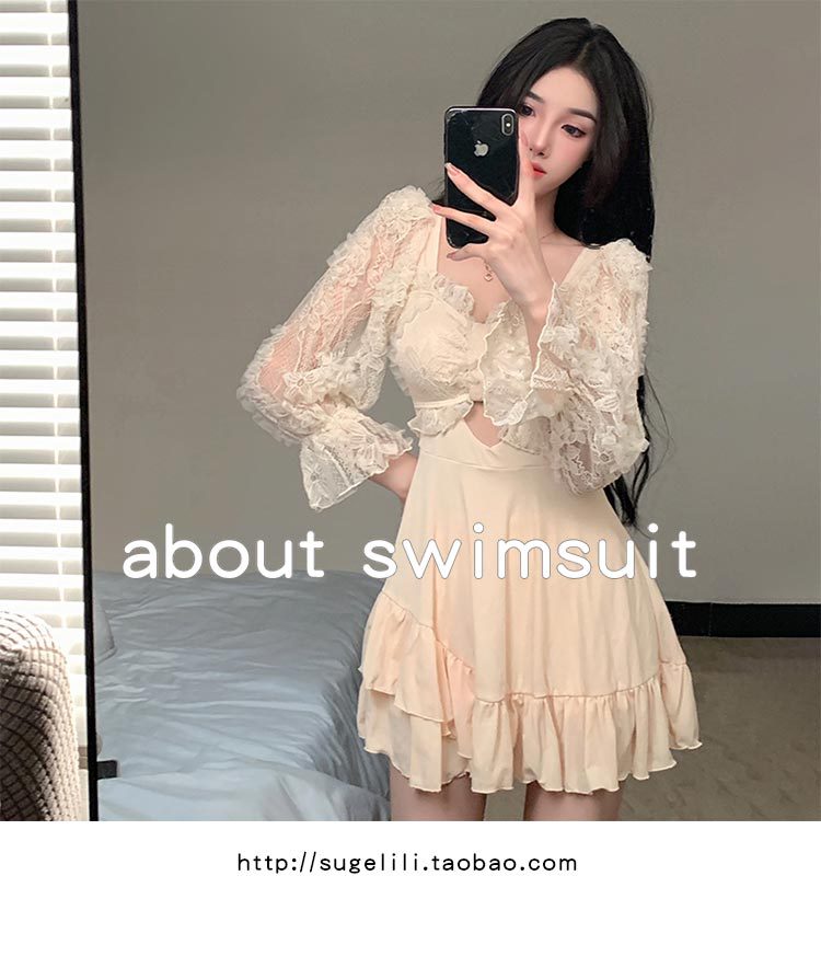 수영복 여성용 스커트 스타일 보수적 인 원피스 배꼽 덮음 슬리밍 학생 소녀 스타일 긴팔 팔 덮음 온천 휴가 수영복스토어 가기