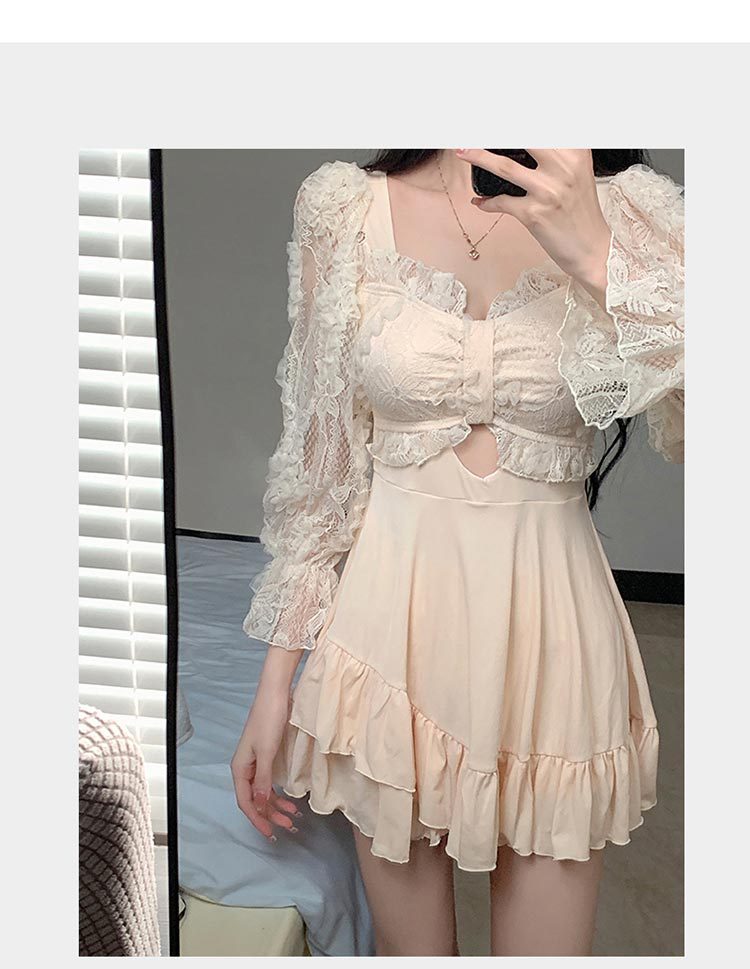 수영복 여성용 스커트 스타일 보수적 인 원피스 배꼽 덮음 슬리밍 학생 소녀 스타일 긴팔 팔 덮음 온천 휴가 수영복