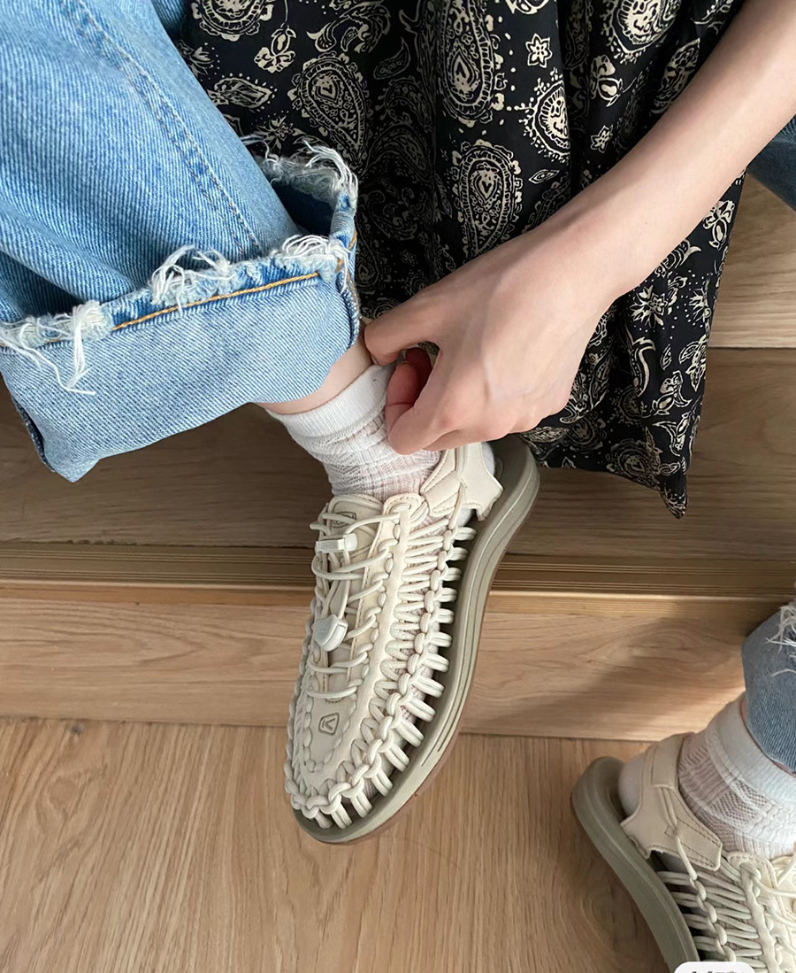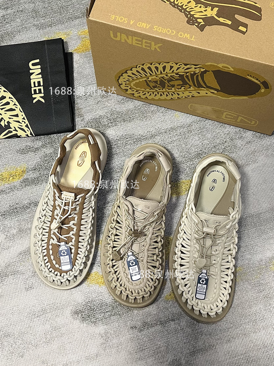 [나이프 새긴 밑창] 짠 샌들 여름 일본 연인 폐쇄 발가락 샌들 여성 비치 신발 남성 스니커즈스토어 가기