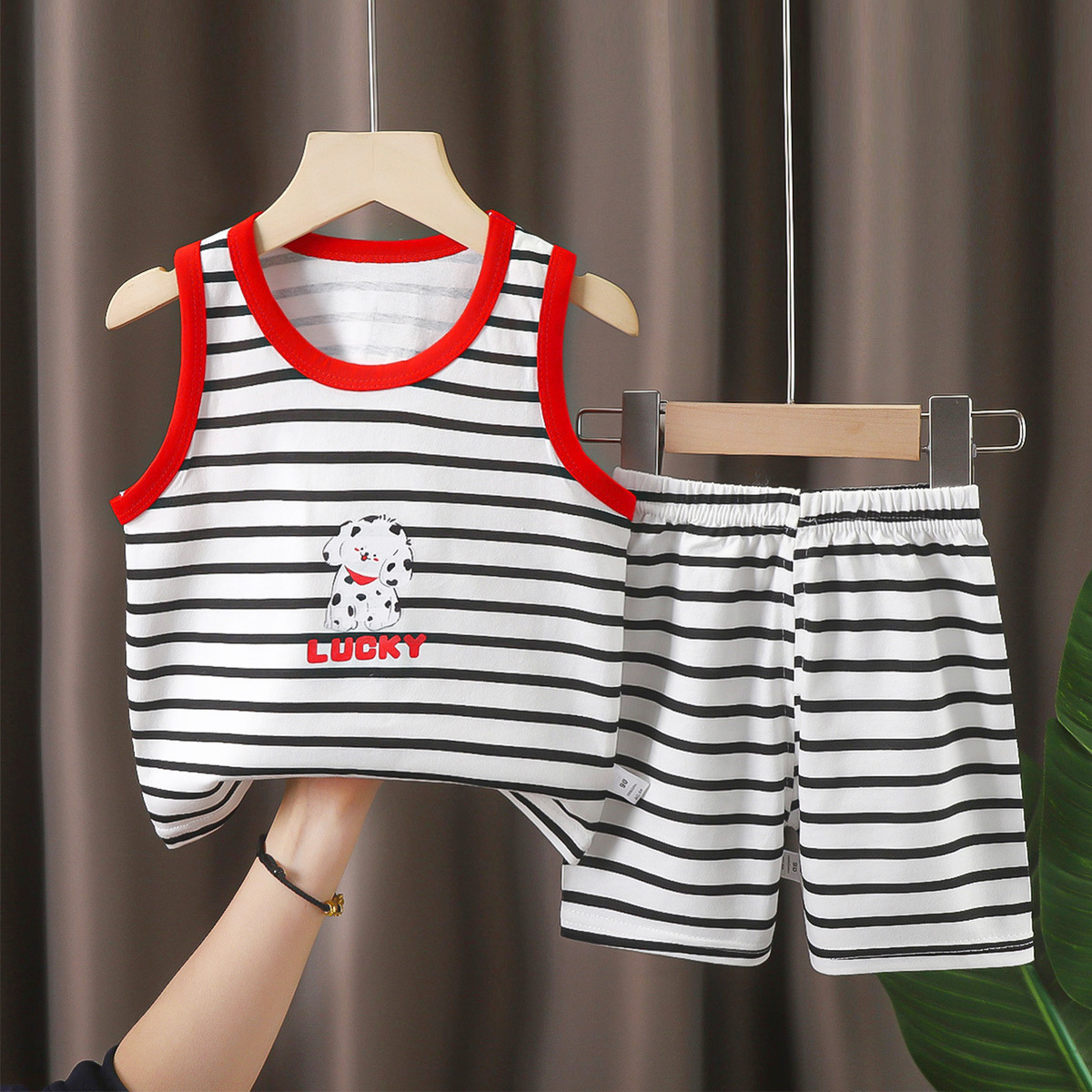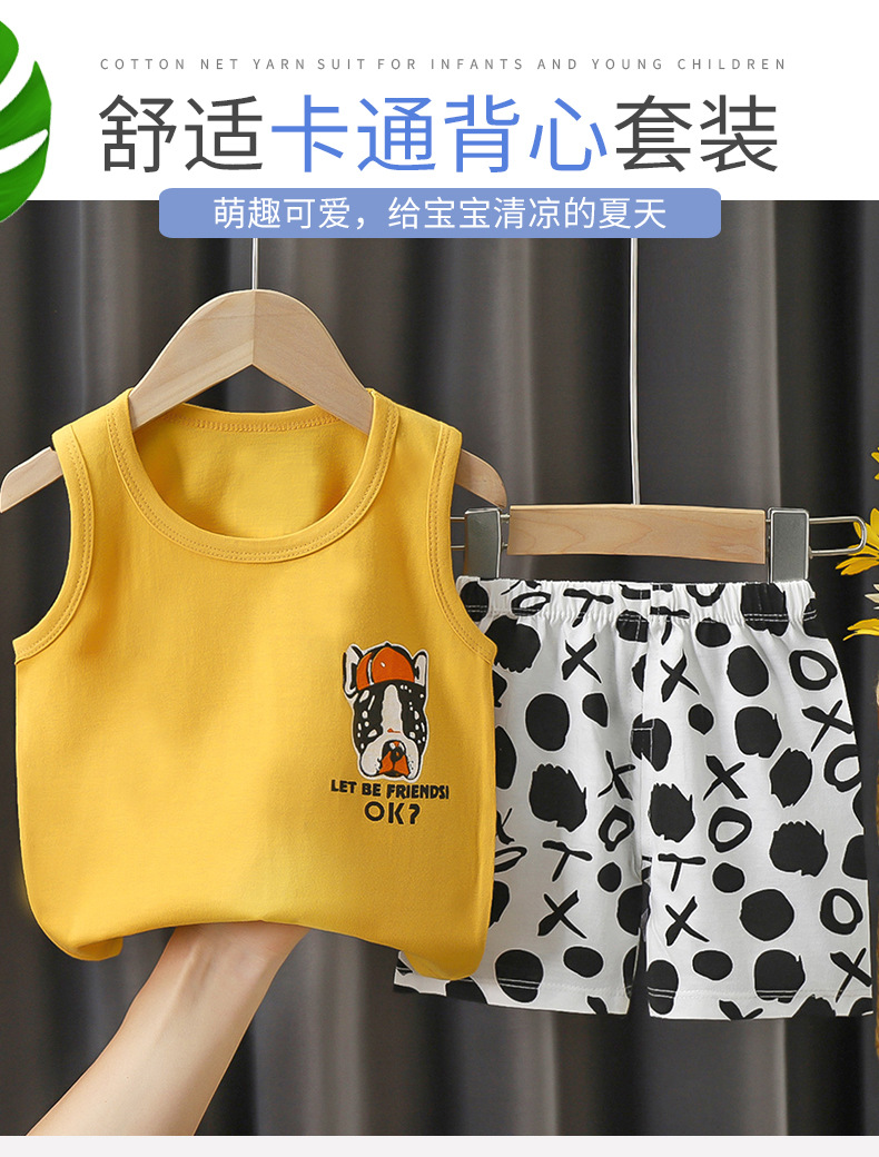 어린이 조끼 세트 면화 여름 소년 2024 여자 반바지 여름 옷 아기 의류 아동복 도매