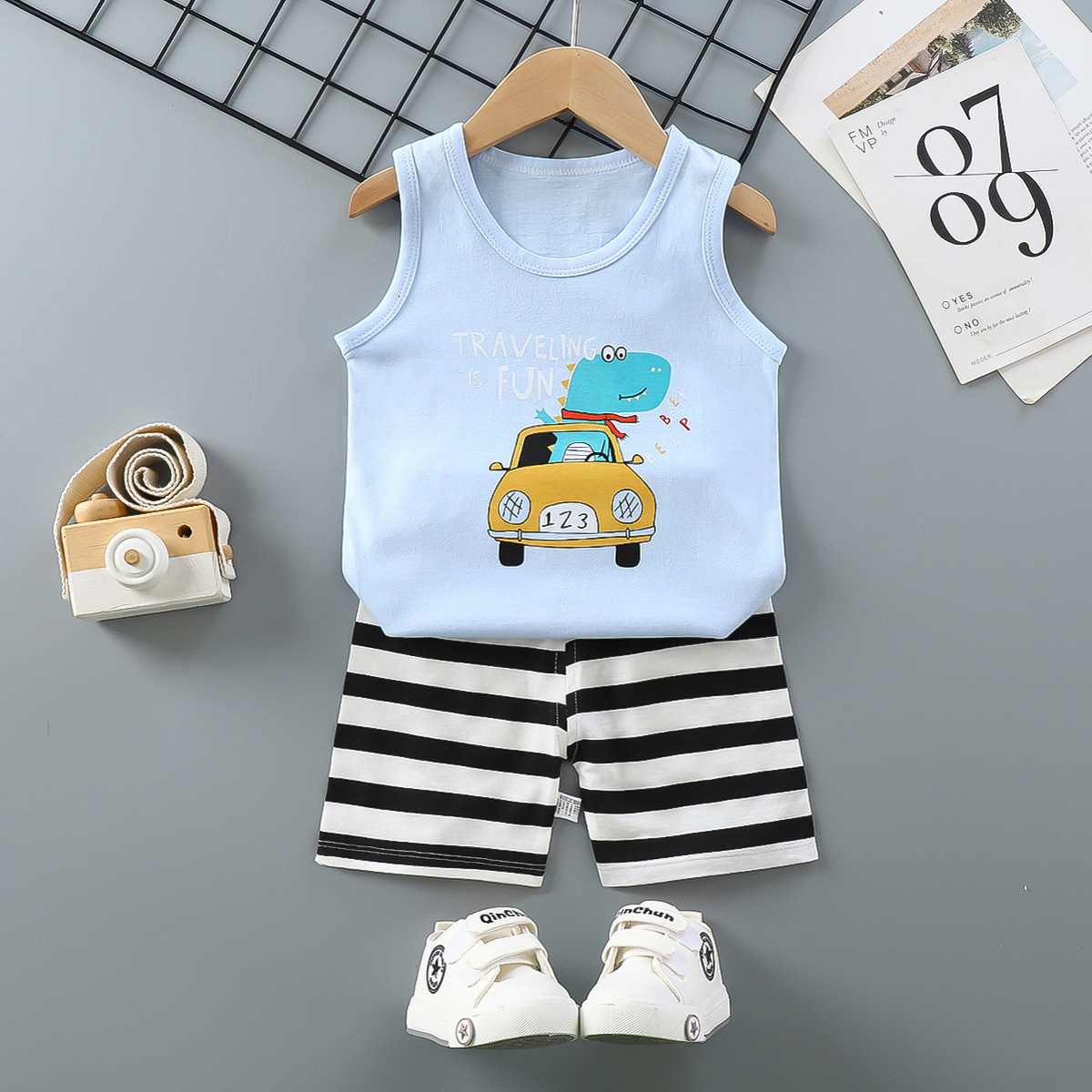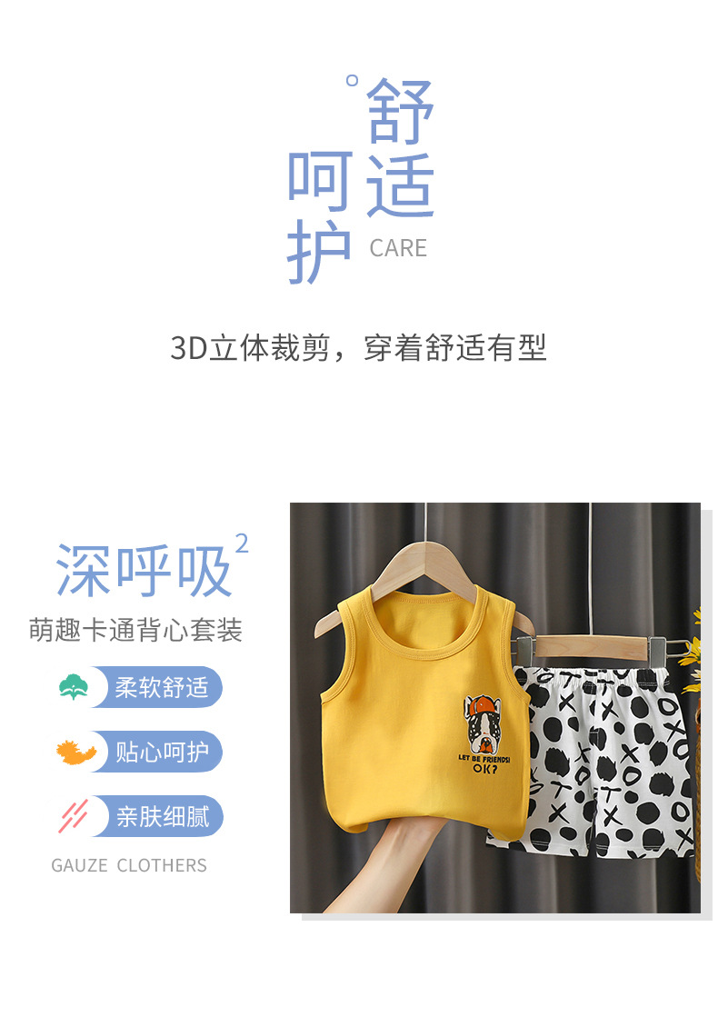 어린이 조끼 세트 면화 여름 소년 2024 여자 반바지 여름 옷 아기 의류 아동복 도매스토어 가기