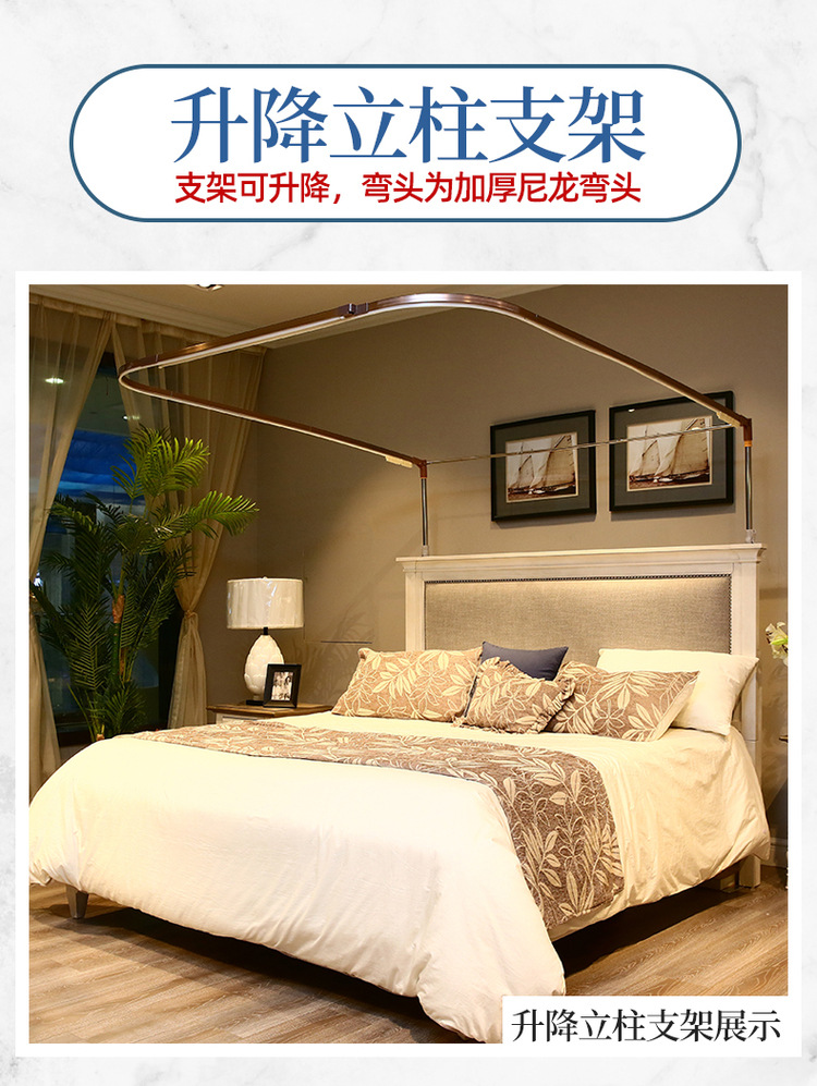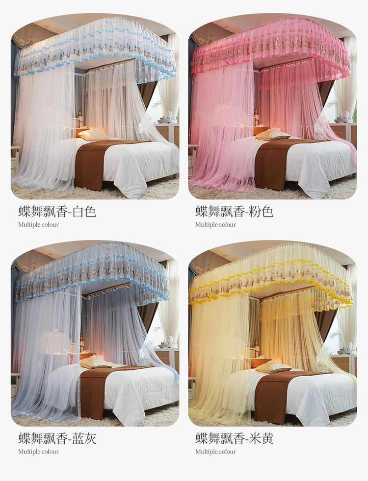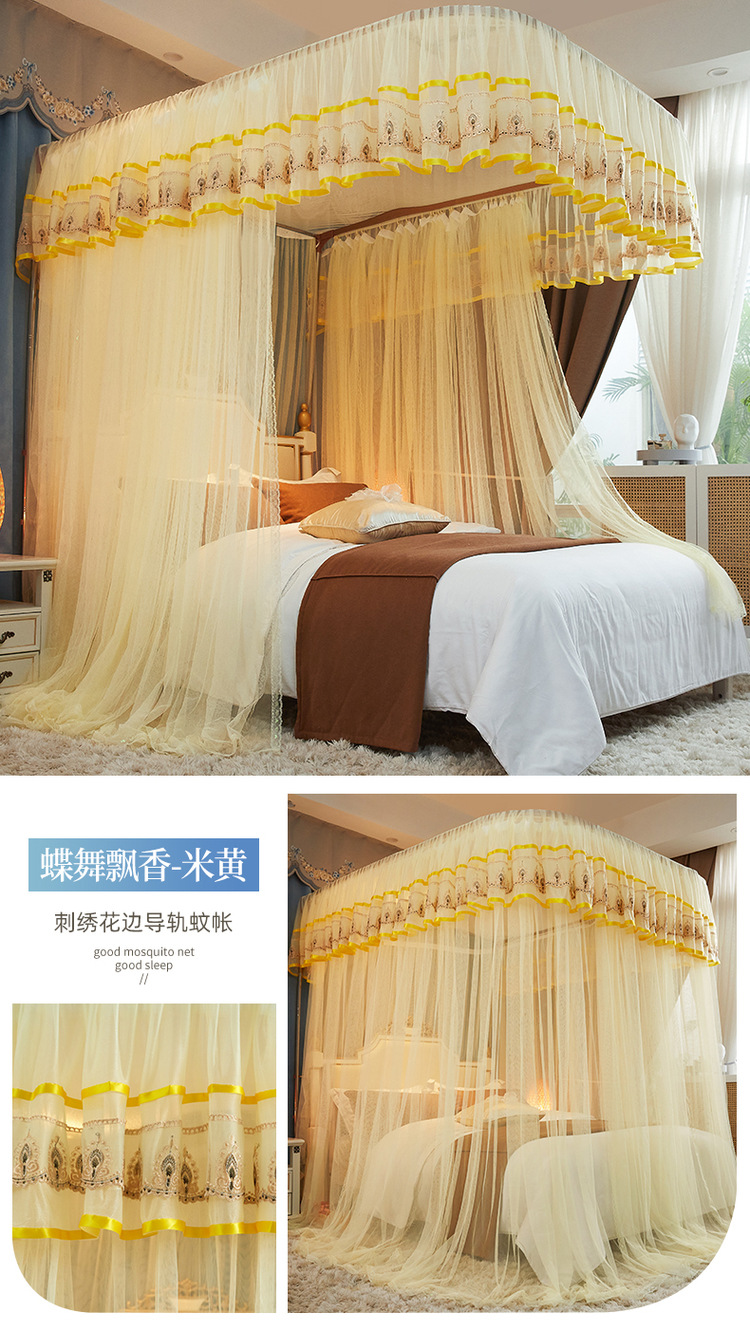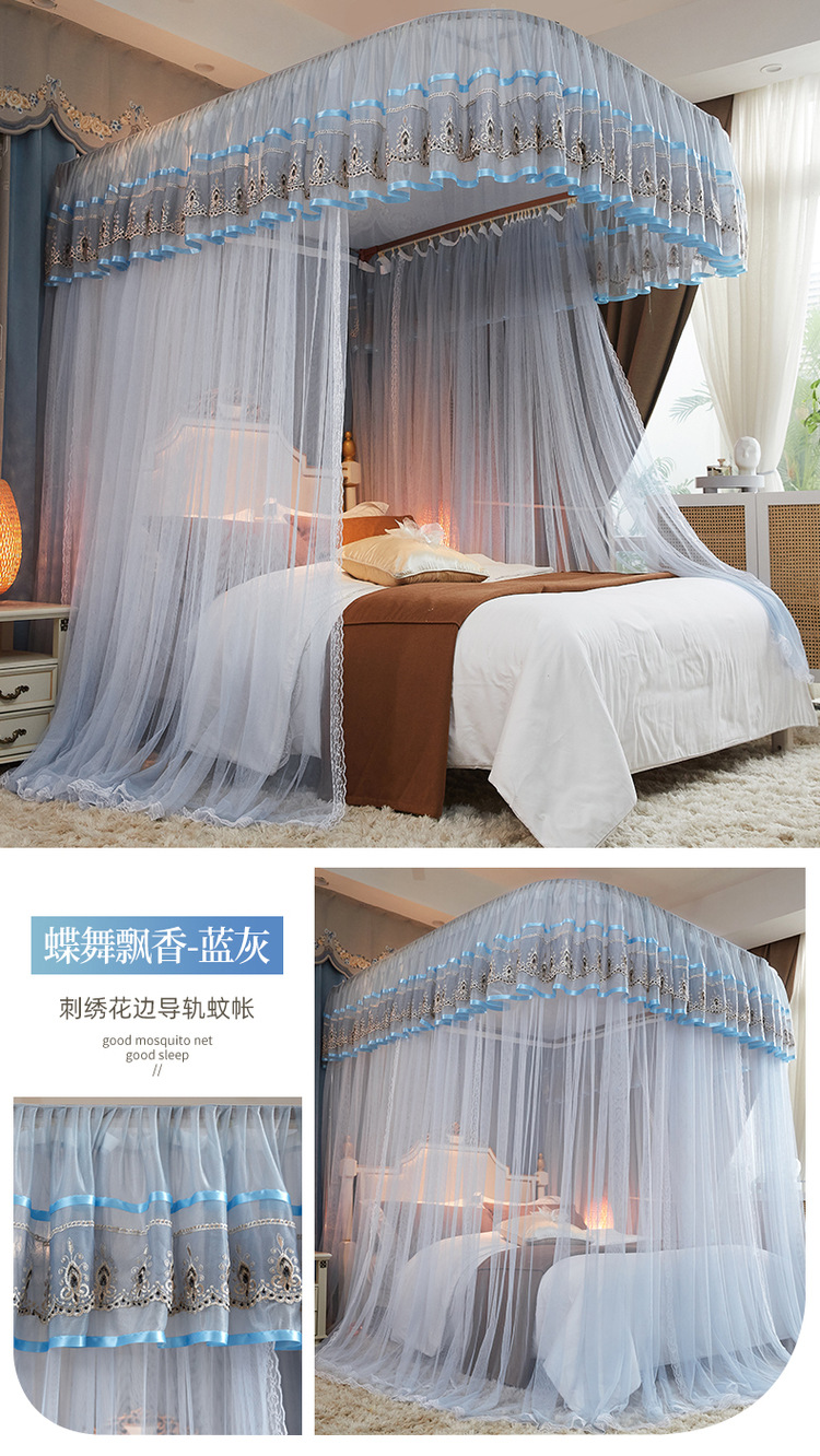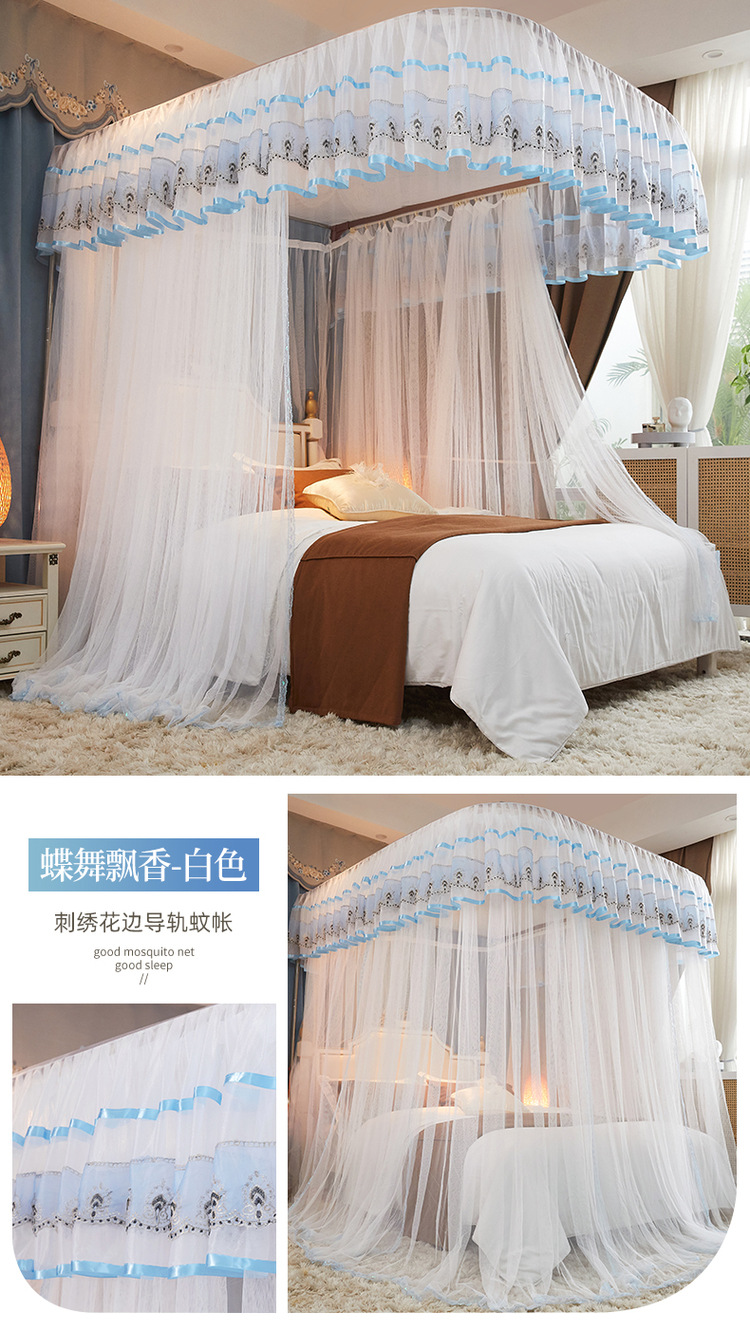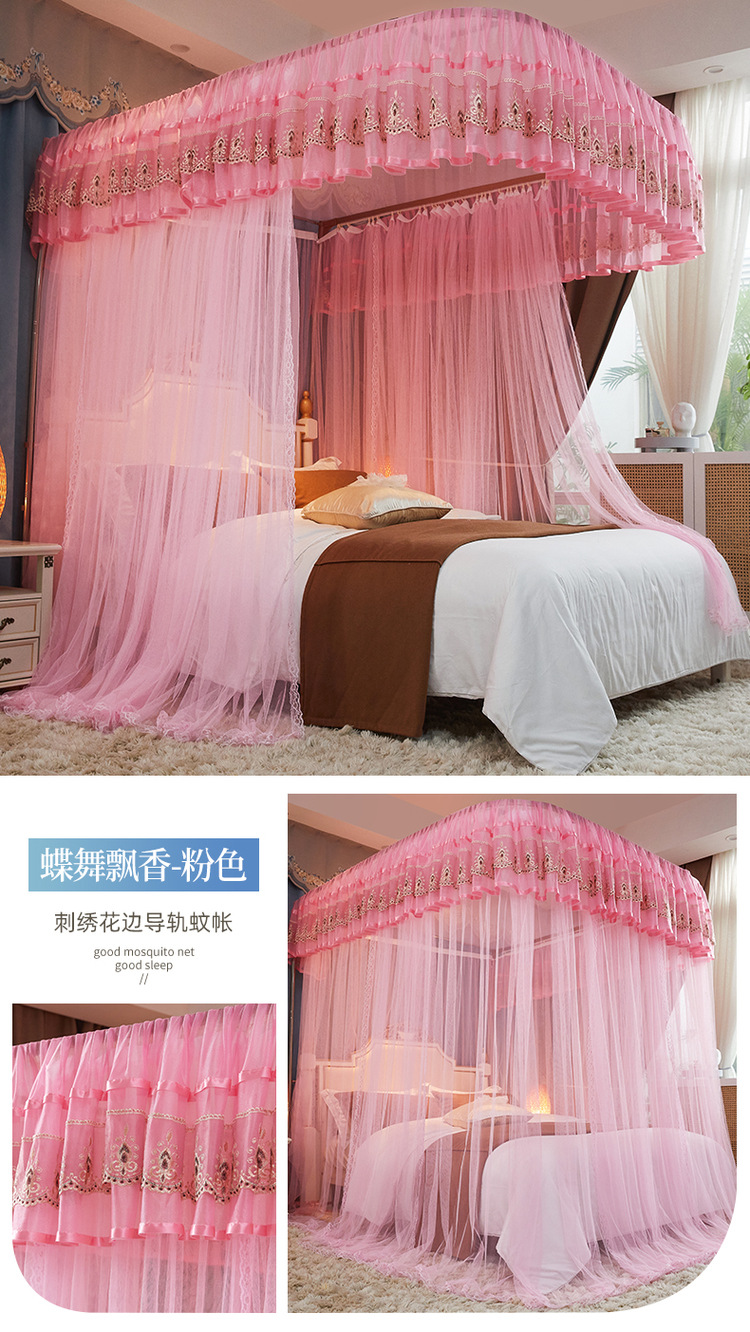 2023 신형 레일형 모기장 궁전 바닥 U자형 침대 커튼 공주 바람 3 도어 들어 올릴 수있는 가정용 침실