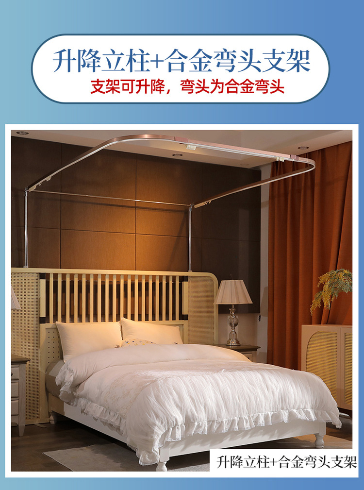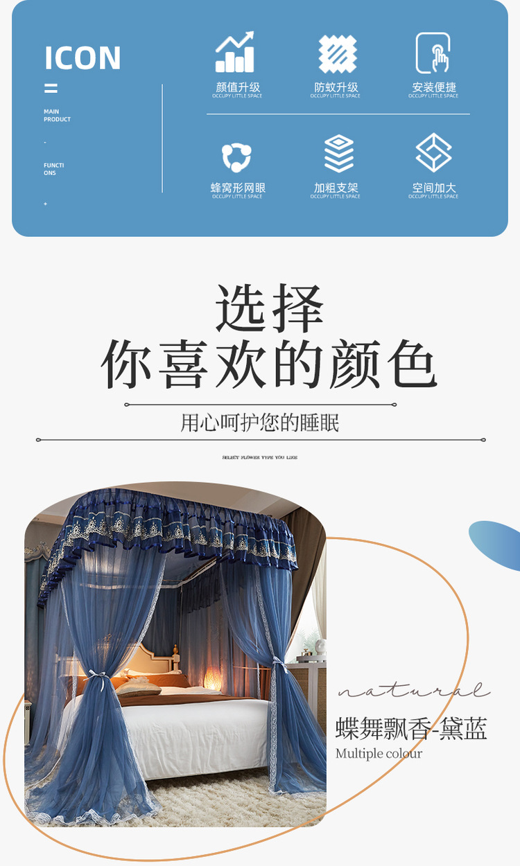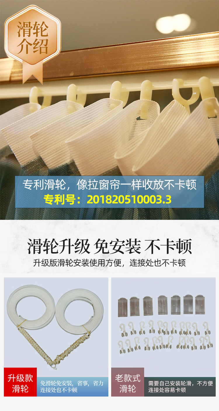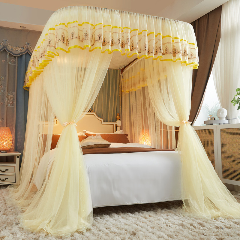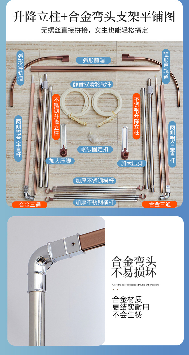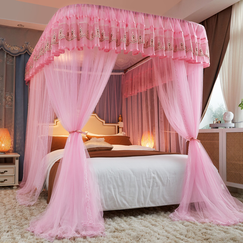 2023 신형 레일형 모기장 궁전 바닥 U자형 침대 커튼 공주 바람 3 도어 들어 올릴 수있는 가정용 침실