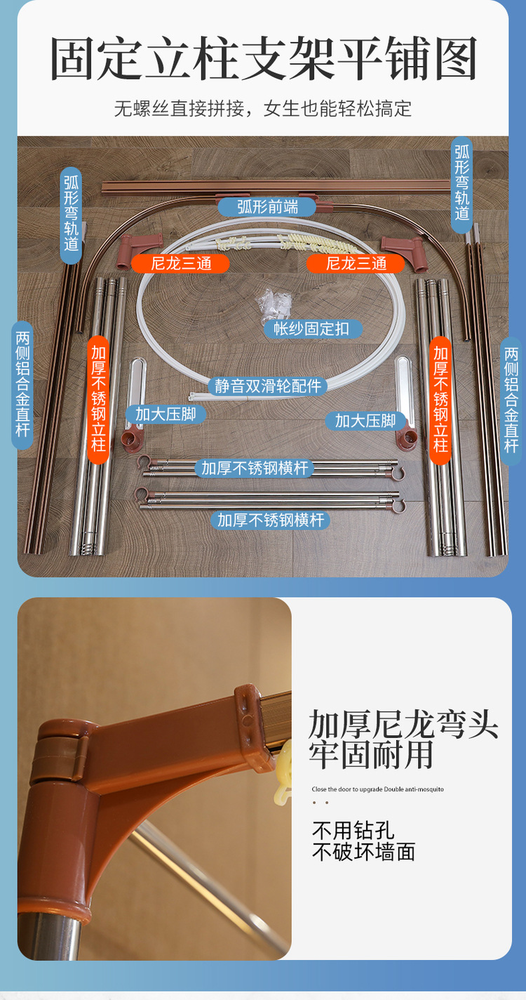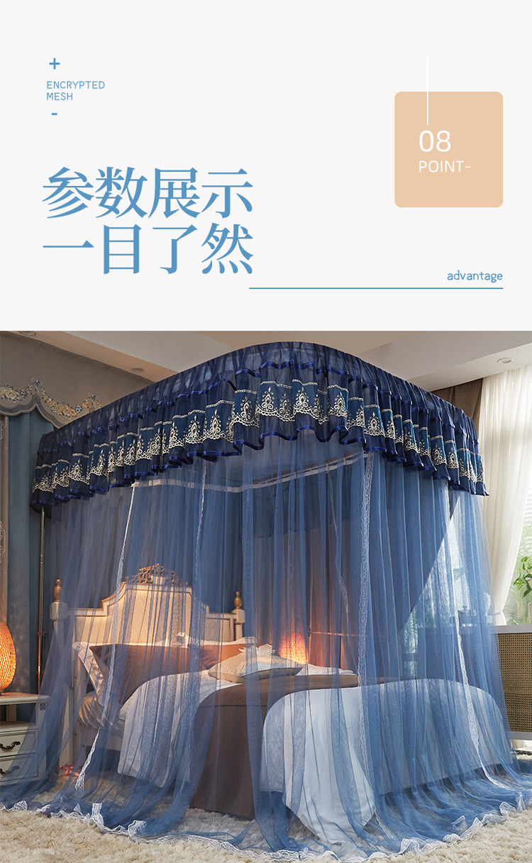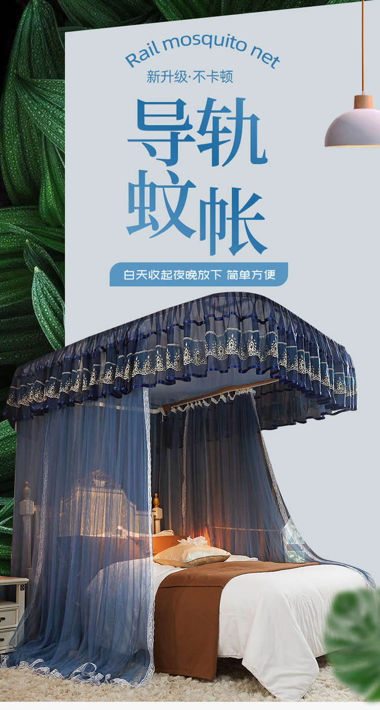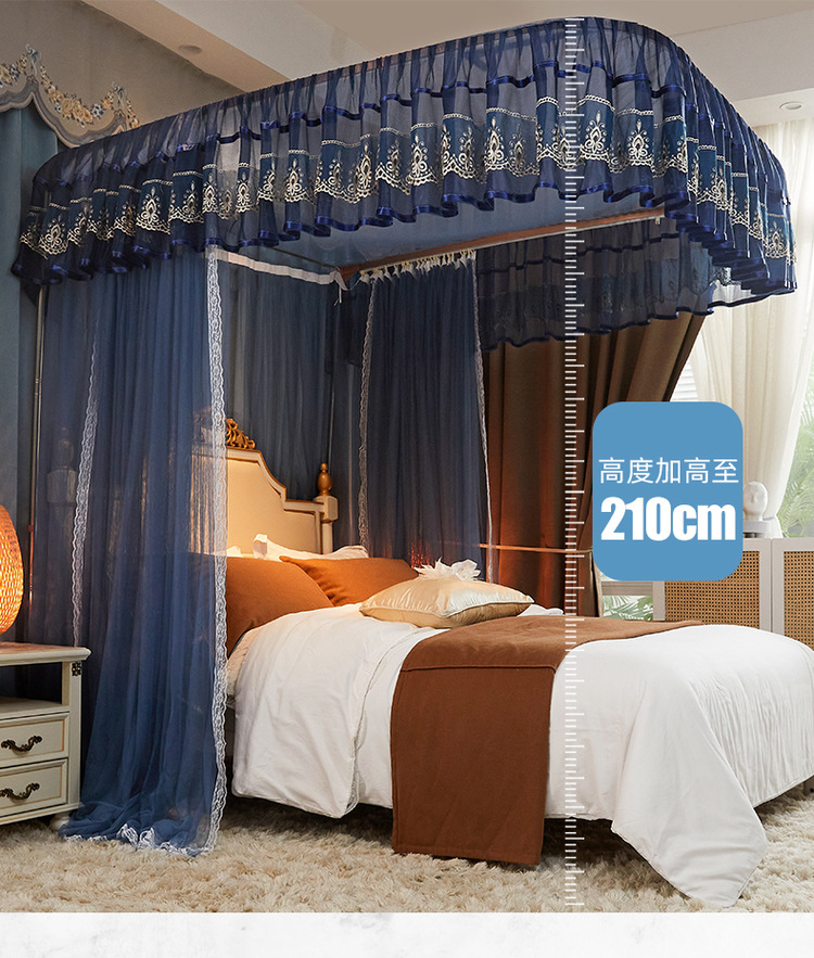 2023 신형 레일형 모기장 궁전 바닥 U자형 침대 커튼 공주 바람 3 도어 들어 올릴 수있는 가정용 침실스토어 가기