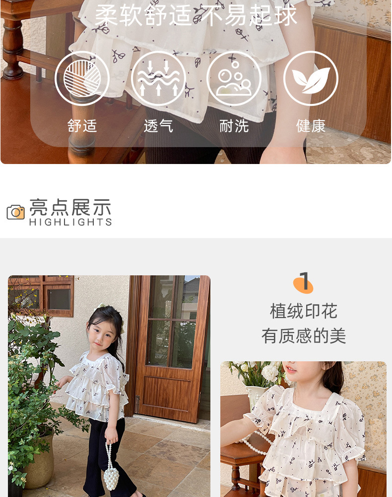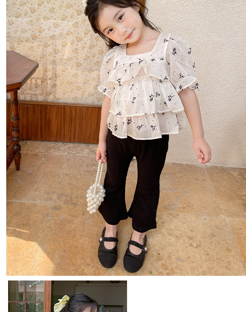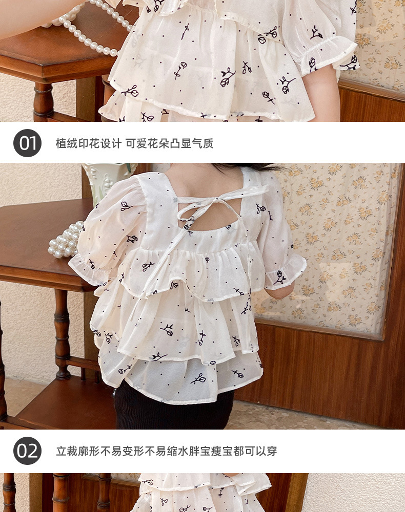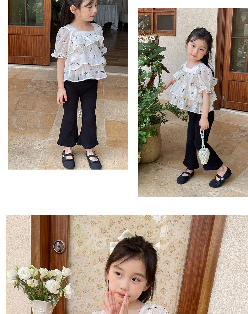 여름 신상 여아 한국 스타일 투피스 세트, 패셔너블한 아동용 꽃무늬 반팔 상의와 여아용 약간의 플레어 팬츠