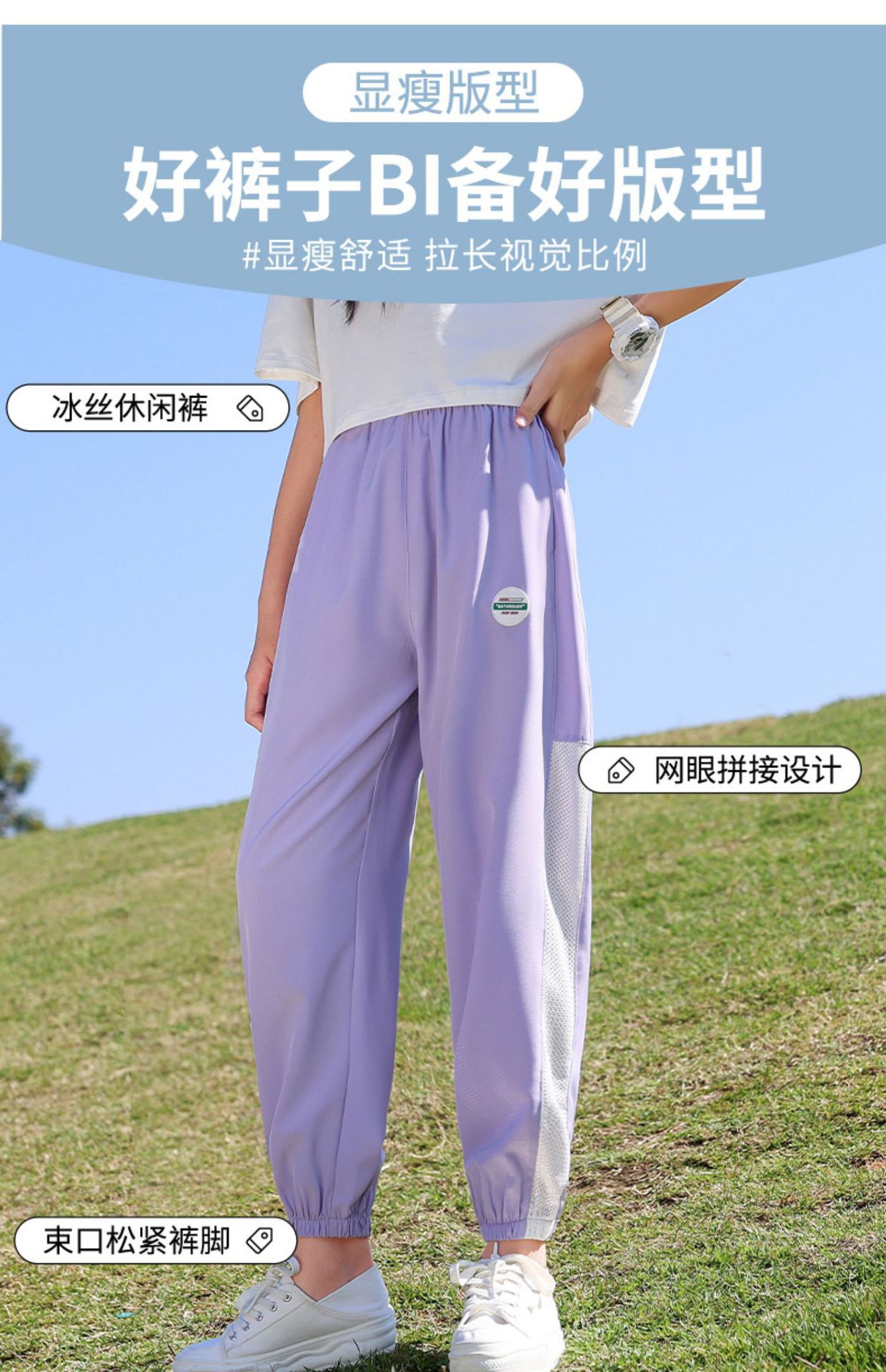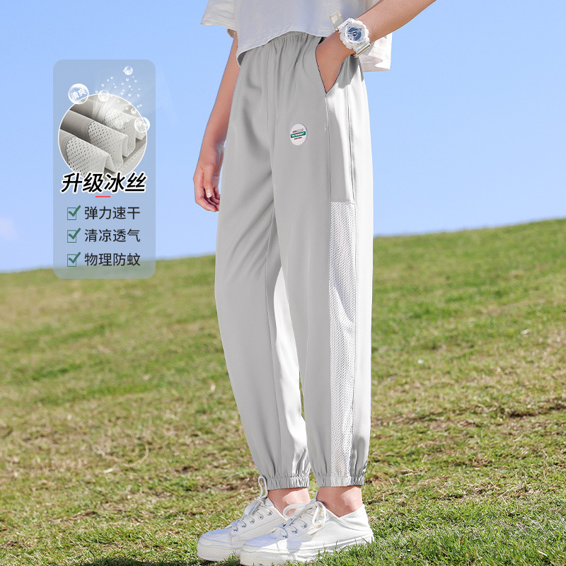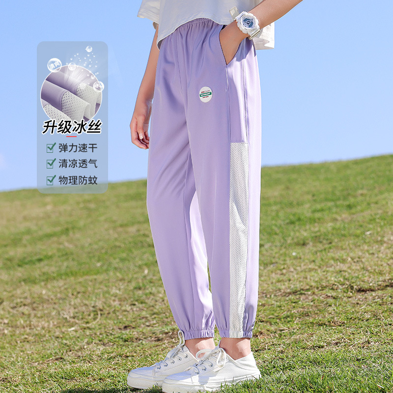 여아 아이스 실크 모기 방지 바지 2023 여름 새 어린이 스포츠 바지 중형 및 대형 어린이 캐주얼 웨스턴 스타일 얇은 바지