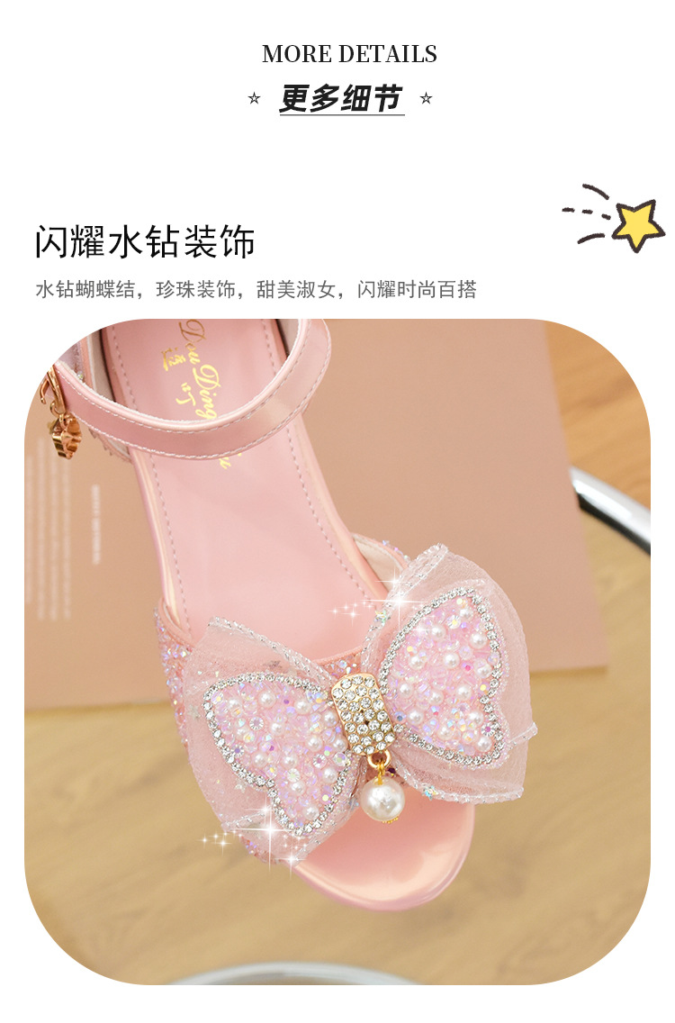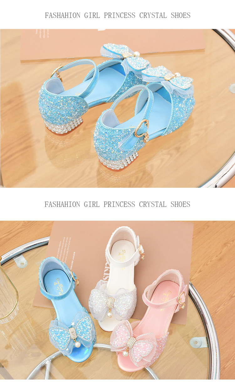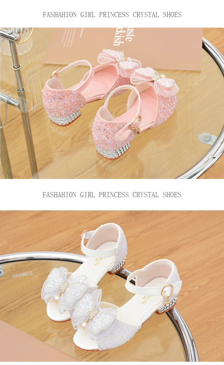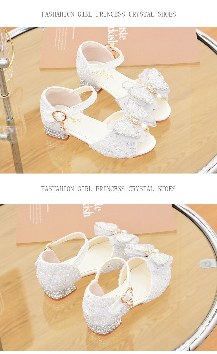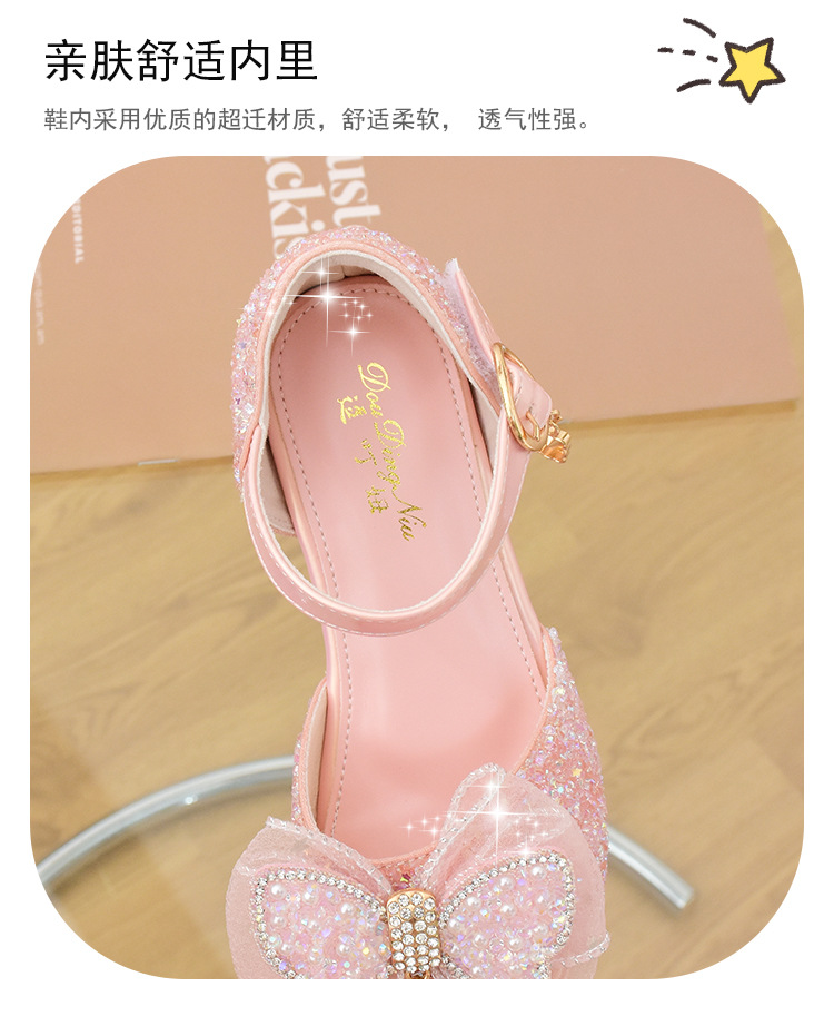 여아 샌들 2023 여름 새로운 하이힐 크리스탈 신발 부드러운 단독 어린이 신발 라인 석 활 공주 신발스토어 가기
