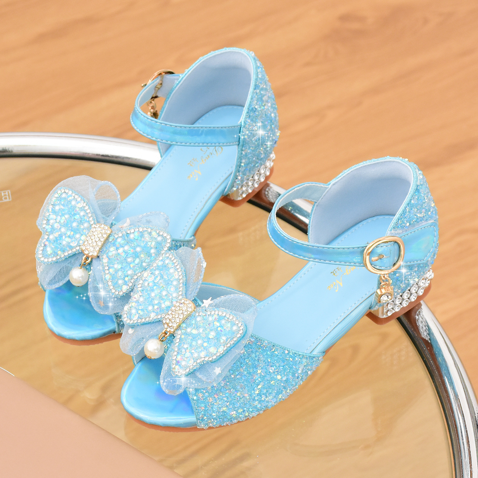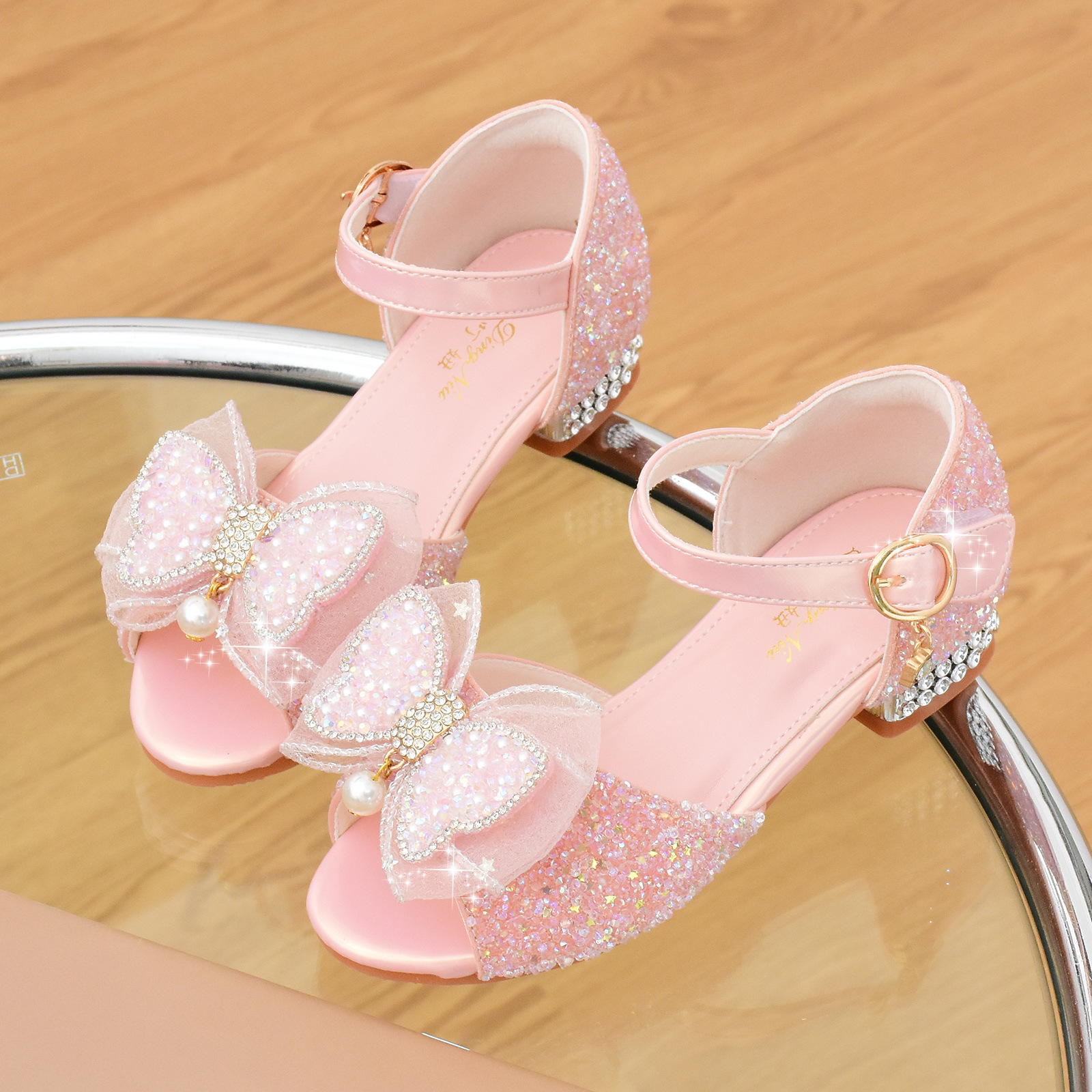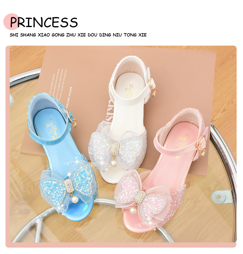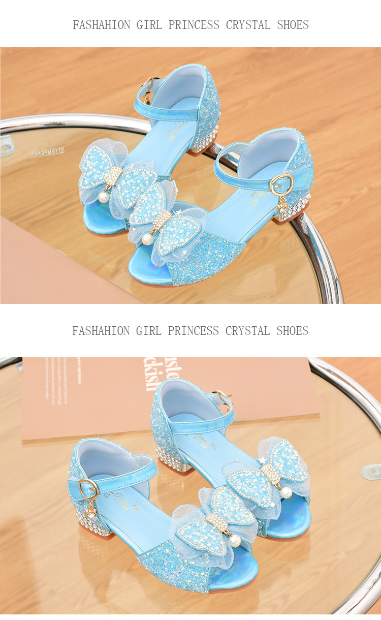 여아 샌들 2023 여름 새로운 하이힐 크리스탈 신발 부드러운 단독 어린이 신발 라인 석 활 공주 신발스토어 가기