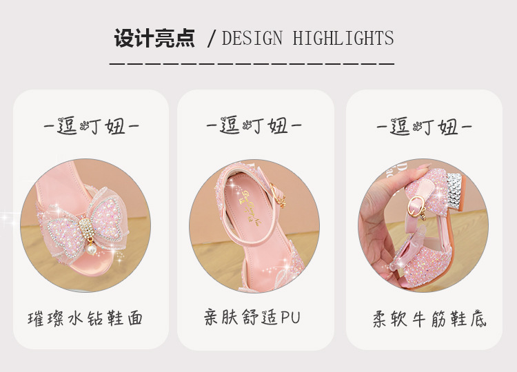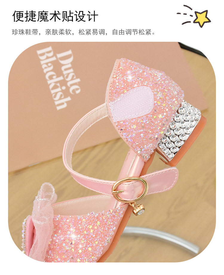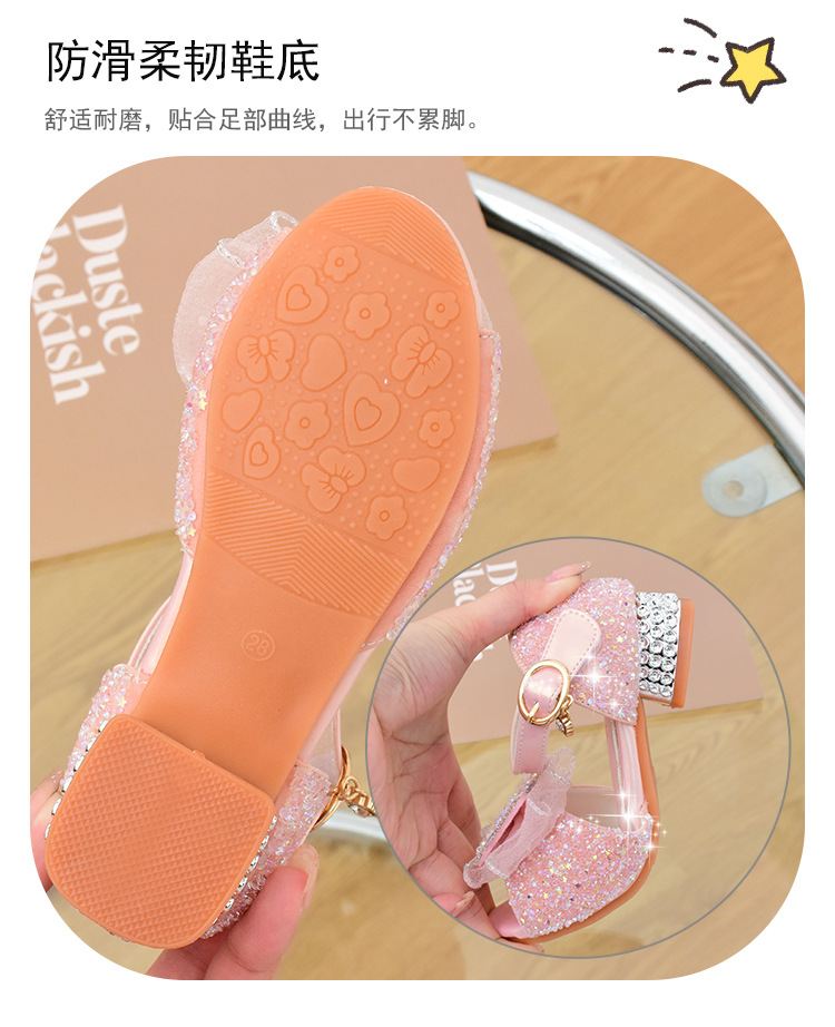 여아 샌들 2023 여름 새로운 하이힐 크리스탈 신발 부드러운 단독 어린이 신발 라인 석 활 공주 신발