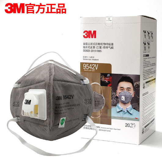 3M9542V 이어 스트랩 헤드 마운트 박스 방진 헤이즈 방지 냄새 방지 호흡 밸브 활성탄 마스크 포함스토어 가기