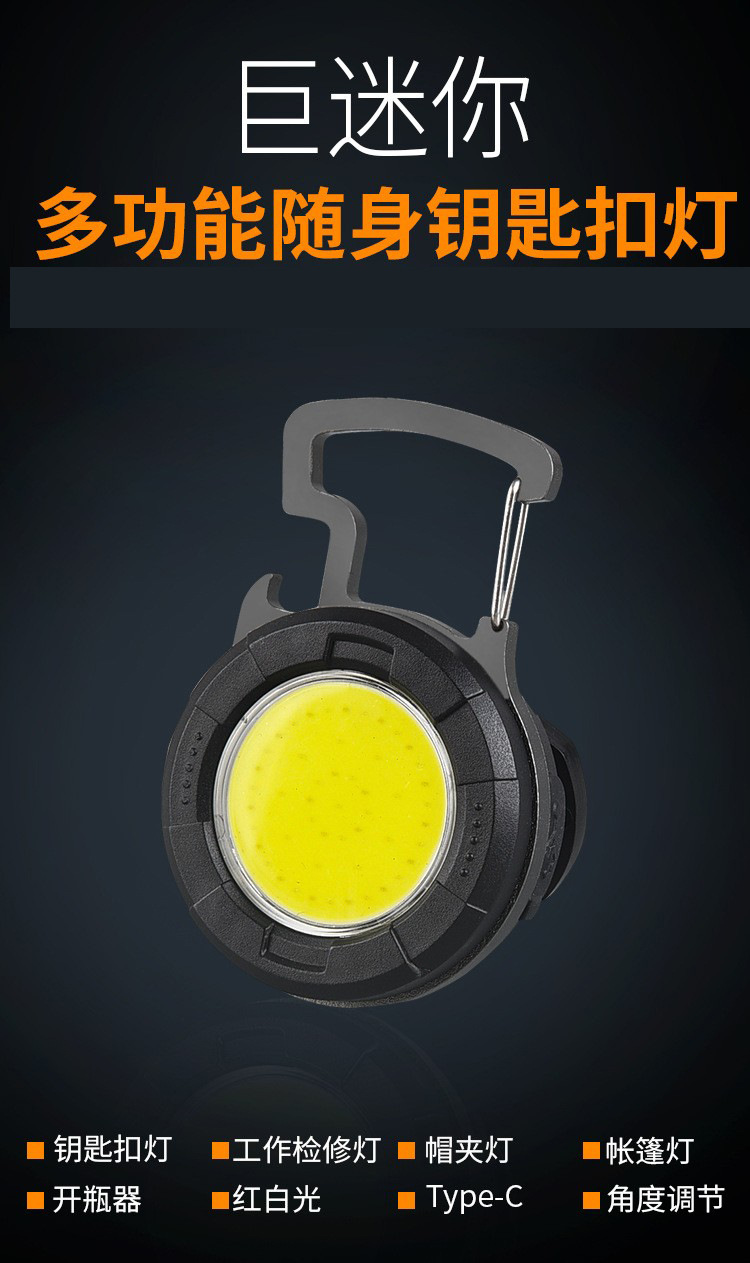 미니 COB 키체인 라이트 500mAh 다기능 미니 COB 작업등 수리등 캠핑 라이트 병따개