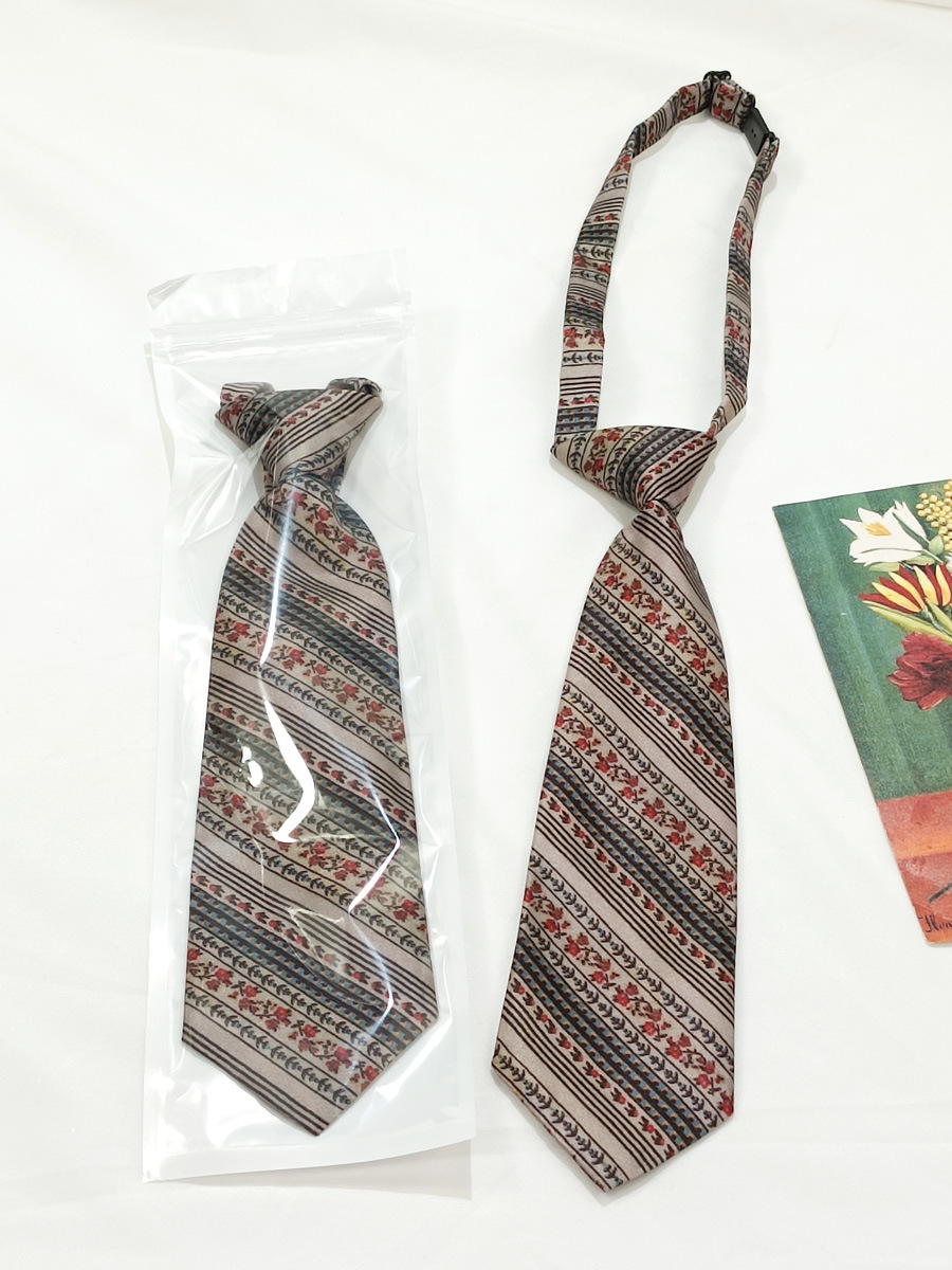 빈티지 다크 브라운 컬러 꽃 넥타이 여성 학생의 짧은 스트라이프 프리 홍콩 스타일 인쇄 아동 액세서리 남성 캐주얼 모든 매치