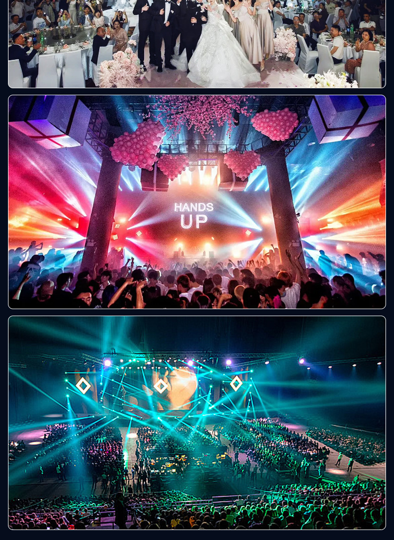 • 18개의 풀 컬러 파 조명