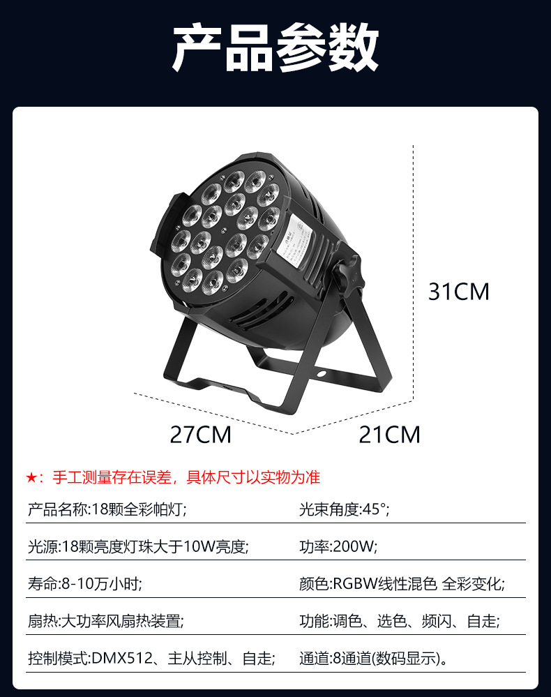 Paide 18구 램프 비드 염색 파 라이트 4-in-1 무대 풀 컬러 파 라이트 라이브 방송실 조명 댄스 스튜디오 염색 조명스토어 가기
