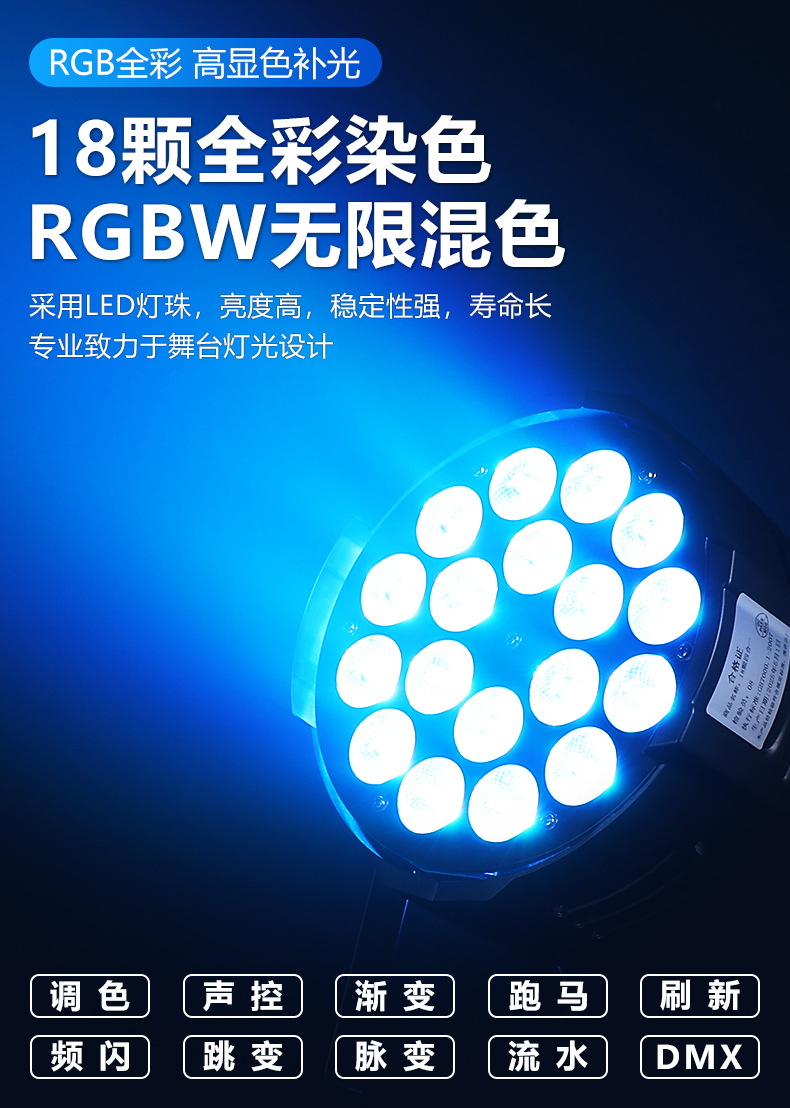 Paide 18구 램프 비드 염색 파 라이트 4-in-1 무대 풀 컬러 파 라이트 라이브 방송실 조명 댄스 스튜디오 염색 조명